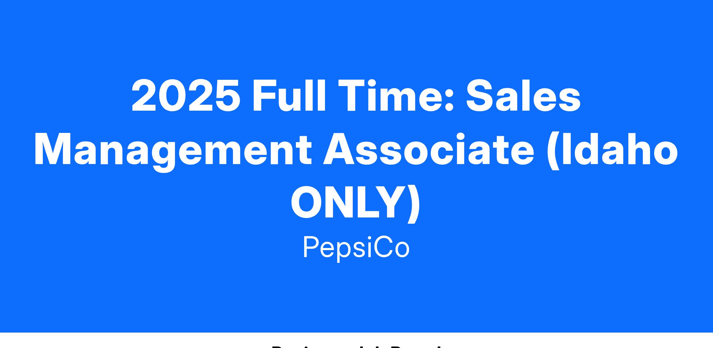 2025 Full Time: Sales Management Associate (Idaho ONLY)