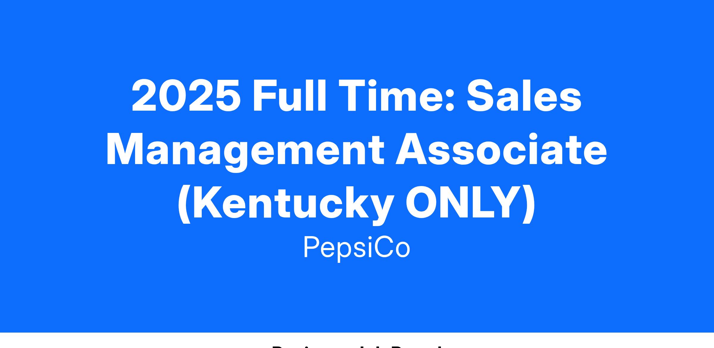 2025 Full Time: Sales Management Associate (Kentucky ONLY)