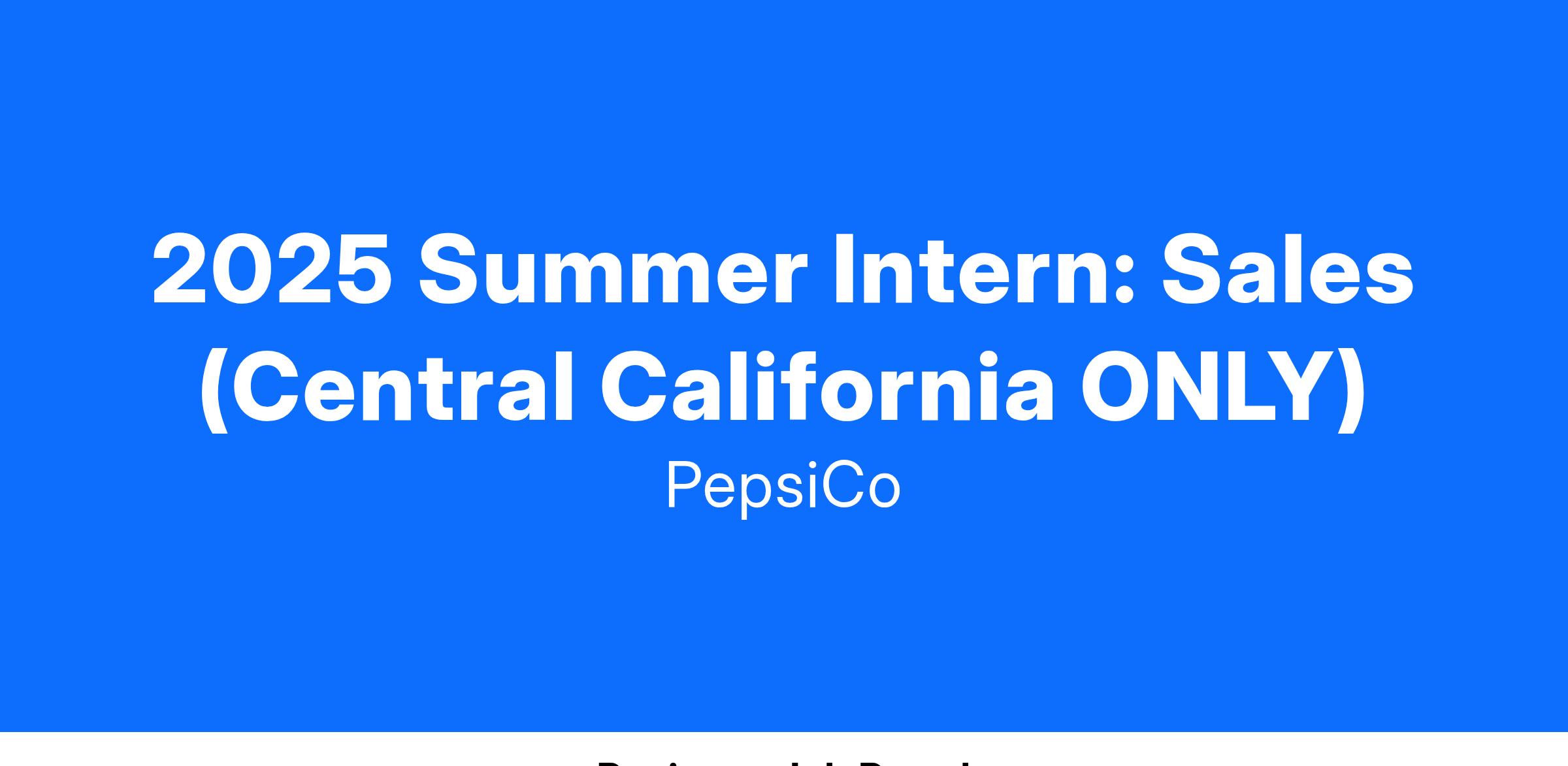 Overview PepsiCo is a playground for curious people. We invite thinkers, doers, and changemakers to champion innovation, take calculated risks, and challenge the status quo. From executives to leaders on the frontline, we’re excited about the future. We take chances. Together, we dare to make the world a better place. Our associates are the magic ingredient. Each of them plays an integral role in helping create deep connections between people and our products. Think about your last group celebration: Chances are, one of our iconic brands was by your side. At PepsiCo, you’re invited to be a part of a global team of innovators who make, move, and sell these products—which are enjoyed by more than 1 billion people a day. A career at PepsiCo means working in a culture where everyone’s invited. Here, you can dare to be yourself. No matter who you are or where you’re from, you can influence the people around you and the world at large. By showing up, you’ll have the opportunity learn, develop, and grow our unique skill sets at work. Our supportive teams can fuel your professional goals to make a global impact. Join us. Dare for Better. Nationwide Opportunities- Please Read: Just because this role looks like it's located in Purchase, NY doesn't mean it is! At PepsiCo we place interns and full time hires in roles nationwide across both field and headquarter locations. Field based roles will only be placed in the field. Responsibilities Functional Description: PepsiCo provides a demanding, fast-paced environment in a competitive industry, where growth equals opportunity and fun accompanies the challenge. Does leading a team of 8-10 sales reps within your first two years excite you? Does spearheading a $10-15 million business sound rewarding? If so, PepsiCo Field Sales might be the organization for you! Based on performance, candidates will have the unique opportunity to move rapidly to increasing levels of responsibility culminating into leadership positions across the sales function. Our college recruiting program is designed to build future sales leaders within our organization and groom candidates for key leadership roles. What you can expect: Strong Focus on Leadership Skill Development Influencing Frontline Selling Associates Flexibility and Autonomy to Achieve Selling & Team Goals High Visibility and Access to Senior Leadership Investment and training in cutting edge mobile technology Internal Campus Networking Activities Centralized Report Out on Learnings & Project Results Below are some of the activities in which you can expect to participate: Own customer-facing summer projects directly tied to our business performance Learn the PepsiCo selling foundation: use fact-based selling skills and deliver exceptional customer service. Demonstrate strong leadership skills to coach, develop, and influence various teams including frontline associates Lead meetings with senior leadership, peers, frontline employees and customers as appropriate to achieve summer sales metrics Use your creativity and entrepreneurial mindset to grow volume & revenue to achieve key metrics Successfully interact with Customers and effectively sell in and execute Sales programs and initiatives. Collect, chart, and interpret statistical data; Prepare and deliver sales presentations to customers as required. Activate local and national marketplace initiatives and promotions to build brand development and maximize brand performance. As the work environment is physical: stand, walk, reach, and squat throughout the workday Compensation & Benefits: • The expected compensation hourly pay ranges for hires into our 2025 campus intern openings is $20.50 - $39.60/hour • Role, degree discipline, degree level, and location are part of the process when determining actual starting salary for positions • Hourly pay for our campus hires is pre-determined and non-negotiable • We love to convert our interns to full time opportunities! Our full time positions have a comprehensive benefits package that include: • Paid time off subject to eligibility, including paid parental leave, vacation, sick, and bereavement. In addition to salary, PepsiCo offers a comprehensive benefits package to support our employees and their families, subject to elections and eligibility: Medical, Dental, Vision, Disability, Health and Dependent Care Reimbursement Accounts, Employee Assistance Program (EAP), Insurance (Accident, Group Legal, Life), Defined Contribution Retirement Plan Qualifications What we’re looking for: Desire to lead, develop and motivate frontline associates. Self-starting individuals who possess the passion and drive to win. Resilience and adaptability to solve problems. Ability to discern priorities and remain organized as business needs evolve. Strong work ethic and heightened sense of urgency to operate successfully in a fast-paced environment. Proven leadership throughout your academic career (on- or off- campus). Previous selling and/or customer service experience (on- or off-campus; either through part time jobs, internship, or academic clubs). Pursuing a Degree in: Management, Business Administration, Communications, Organizational Leadership, Entrepreneurship, Professional Selling (other related majors will be considered). Availability to work flexible schedules (including early mornings, evenings and/or weekends). Flexibility for relocation. Spanish language skills a plus Minimum Qualifications - Each candidate is expected to: This position is limited to persons with indefinite right to work in the United States. Graduate with Bachelors degree within one (1) year of internship completion Have a valid, unrestricted United States (State Issued) driver’s license at least three months prior to start date, and access to an automobile to drive to various sales locations for duration of time in role. EEO Statement Our Company will consider for employment qualified applicants with criminal histories in a manner consi
