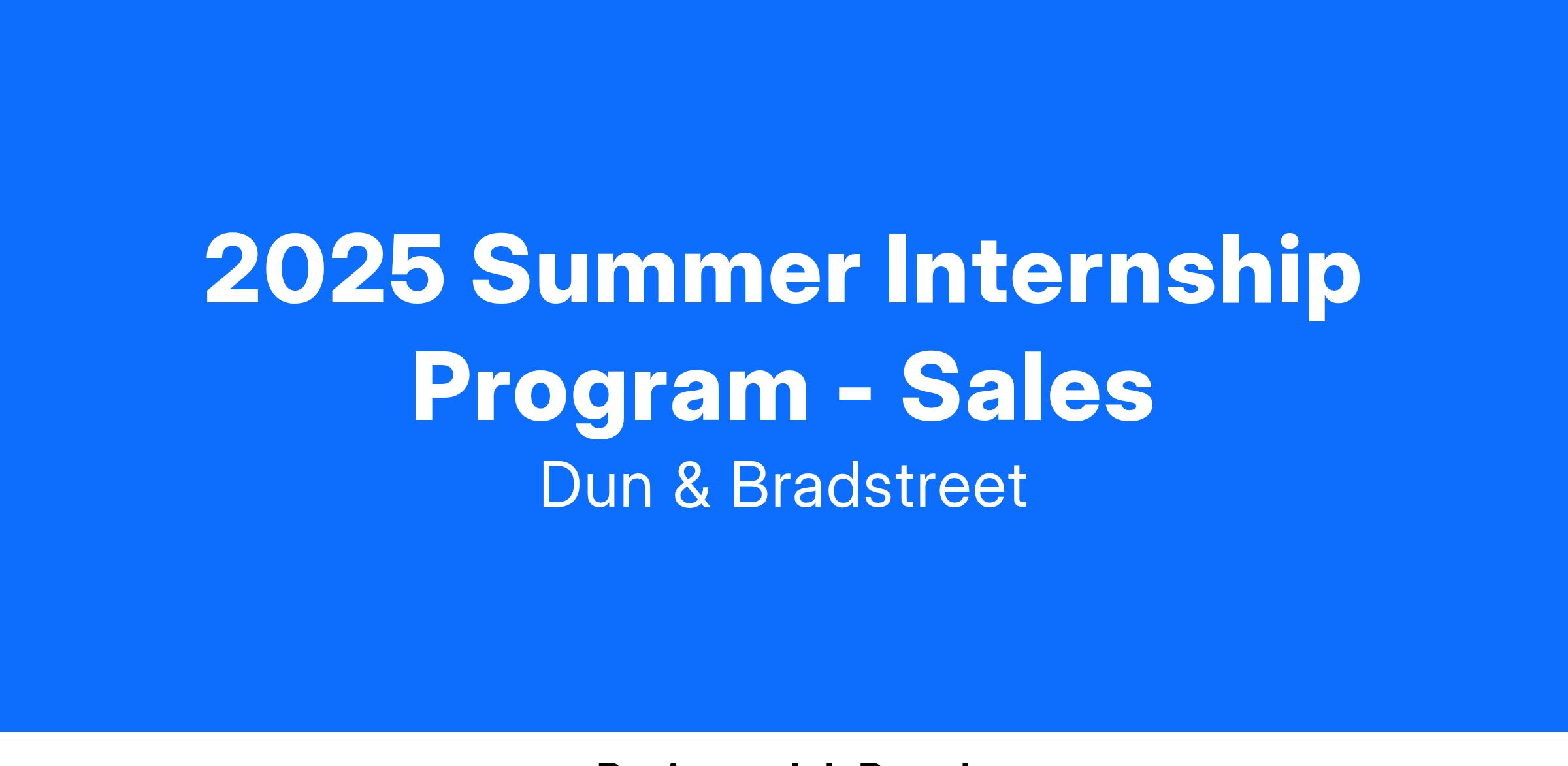 We have exciting opportunities for 2025 summer interns on our Sales team at Dun & Bradstreet! We are seeking self-motivated individuals who are interested and curious about a career in sales. You will work closely with the sales team to support day-to-day activities and gain insights into our sales processes. Our teams are committed to partnering across the organization to serve and grow our customer base, build the Dun & Bradstreet brand, and understand the drivers of what ultimately brings in new customers and retains existing clients – all with the goal of ultimately delivering against our business goals.