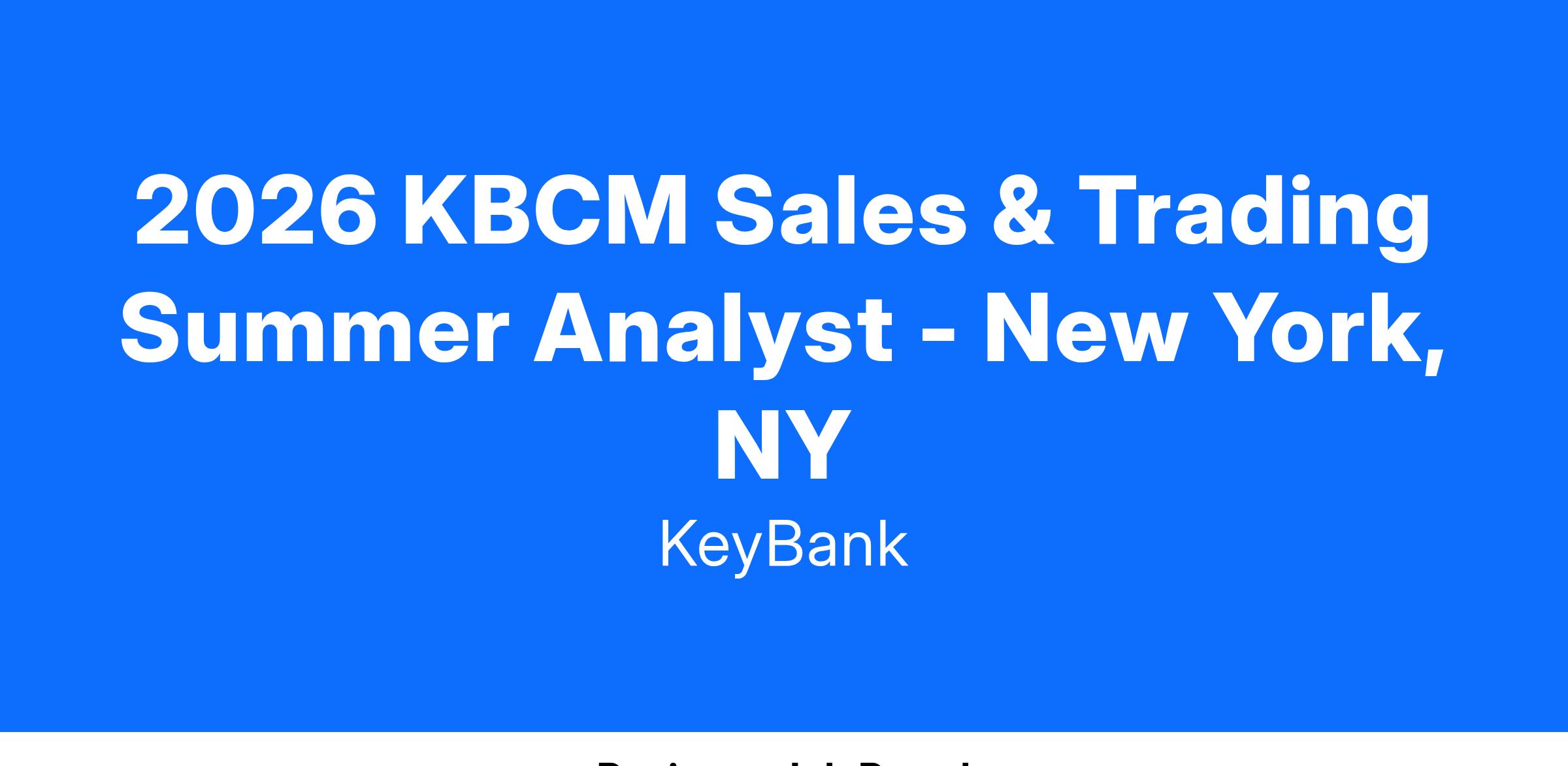 KBCM provides its Summer Analysts unprecedented professional development opportunities through a mix of on-the-job training and structured, hands-on experience. The program is designed to provide broad experience across all stages of transaction executions, from pitch phase through closing. Because our Summer Analyst Program is a direct pipeline for our full-time Analyst positions, it offers exceptional potential for you to return to KBCM upon graduation to start your capital markets career.