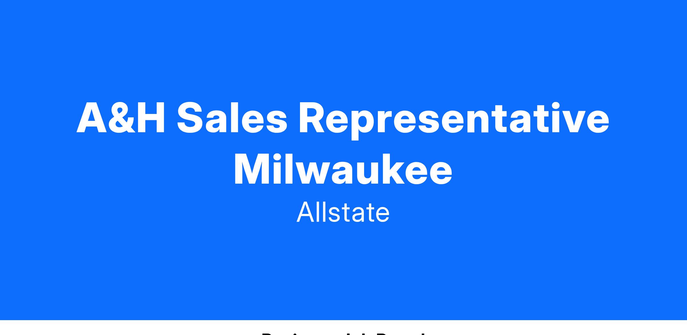 Why Choose Allstate Group Health Benefits?• Help implement and monitor procedures to improve persistency of business written in assigned area