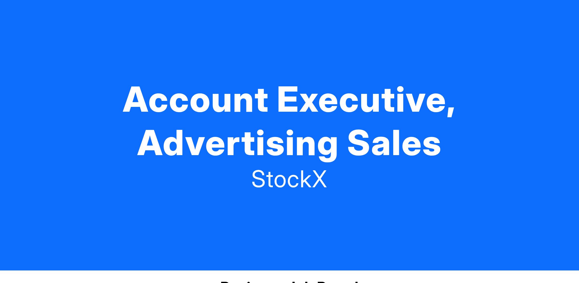 - Existing advertiser and agency relationships that would be a good fit for StockX, allowing you to hit the ground running.