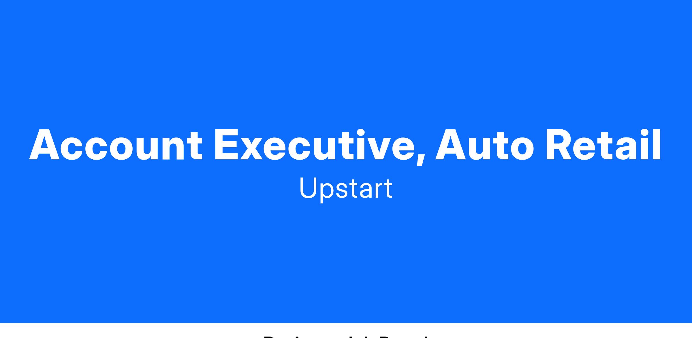 Offering a fully end-to-end digital retailing platform, including our leading AI lending technology, we are now better positioned than ever to deliver our mission of creating the world’s best car buying experience with cutting-edge auto-retail software, while enabling effortless credit based on true risk. Upstart is excited to continue to expand our core products offerings to the auto space and we need a strong sales team who can bring our unique solutions to dealerships across the country.