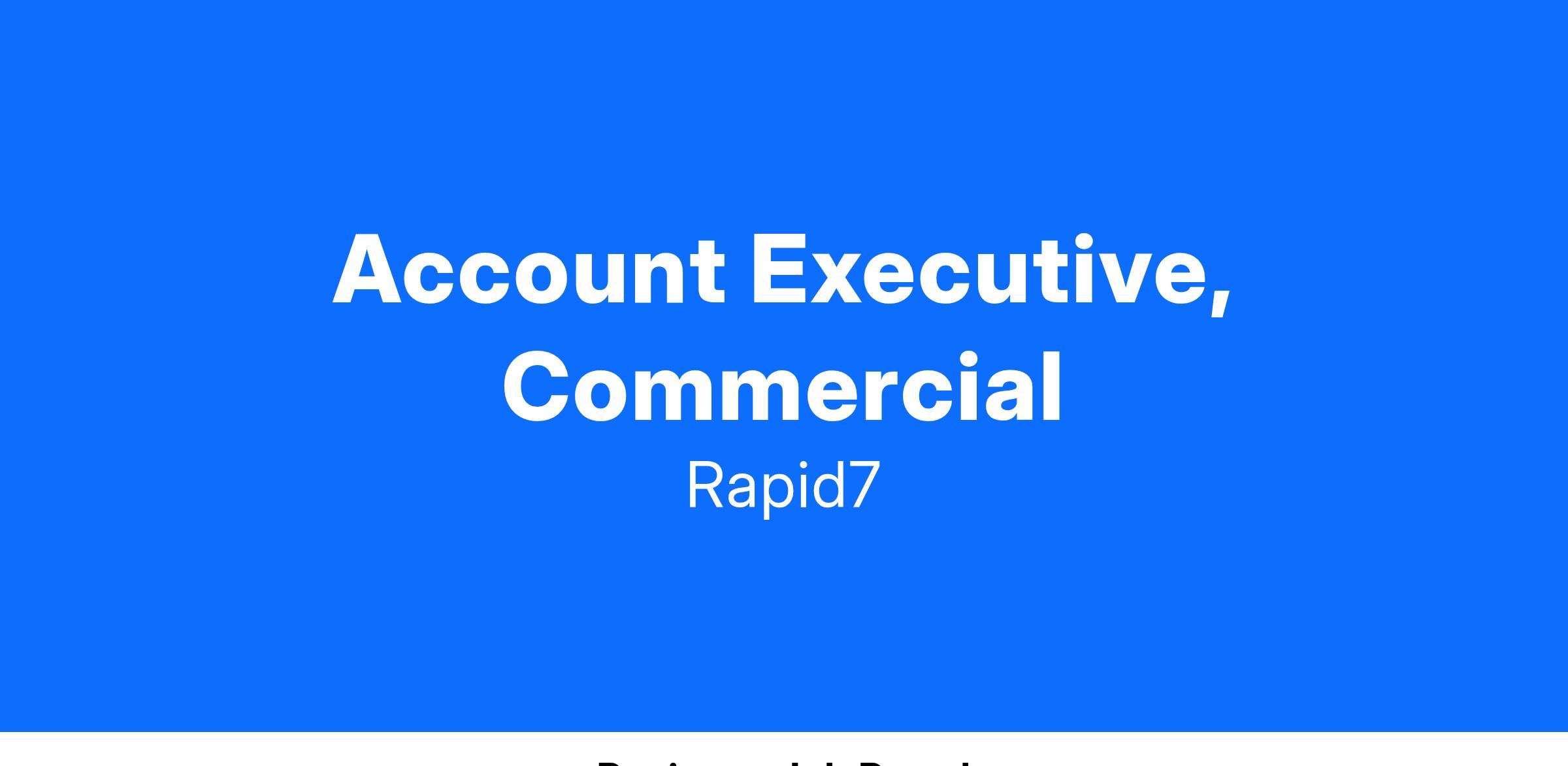 The main goal of our Commercial Account Executives is to drive net new sales, while managing upsell opportunities within your assigned territory. In this role, you will partner cross functionally with internal teams to drive business opportunities from initial prospecting through negotiation to contract close. This is a quota carrying role and critical to the continued success of Rapid7.