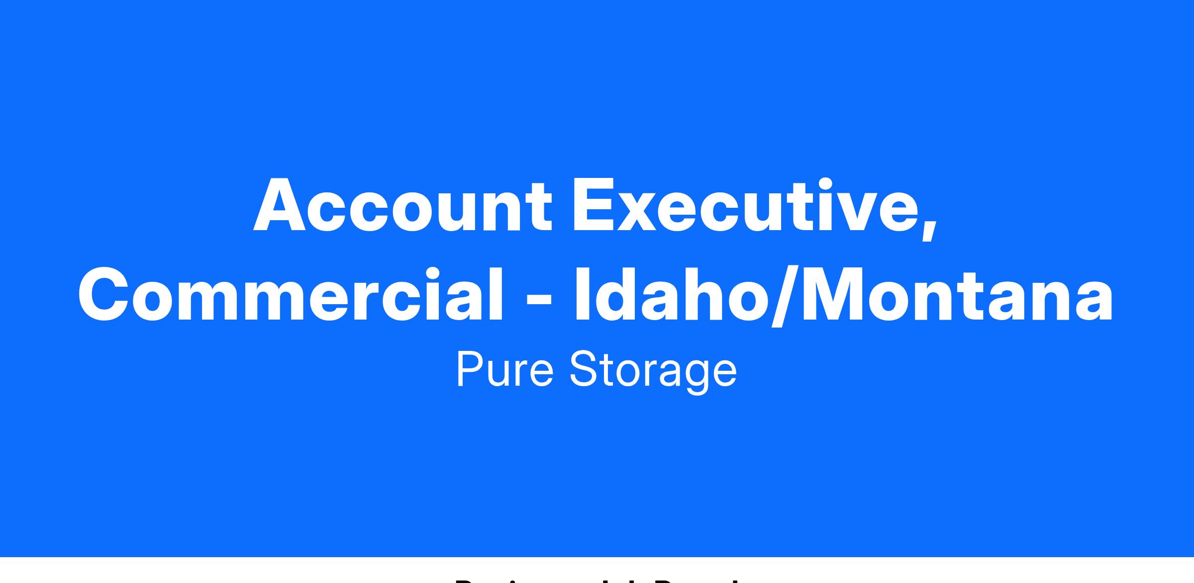 Pure Storage is seeking an Account Executive with experience selling into customers in Idaho/Montana area. This Account Executive will coordinate the overall strategy and relationship between the assigned accounts and Pure Storage. They will be responsible for team-selling efforts with other teammates and strategic partners around the globe to close business on a quarterly and annual basis. The ideal candidate will currently be selling and living in Boise.