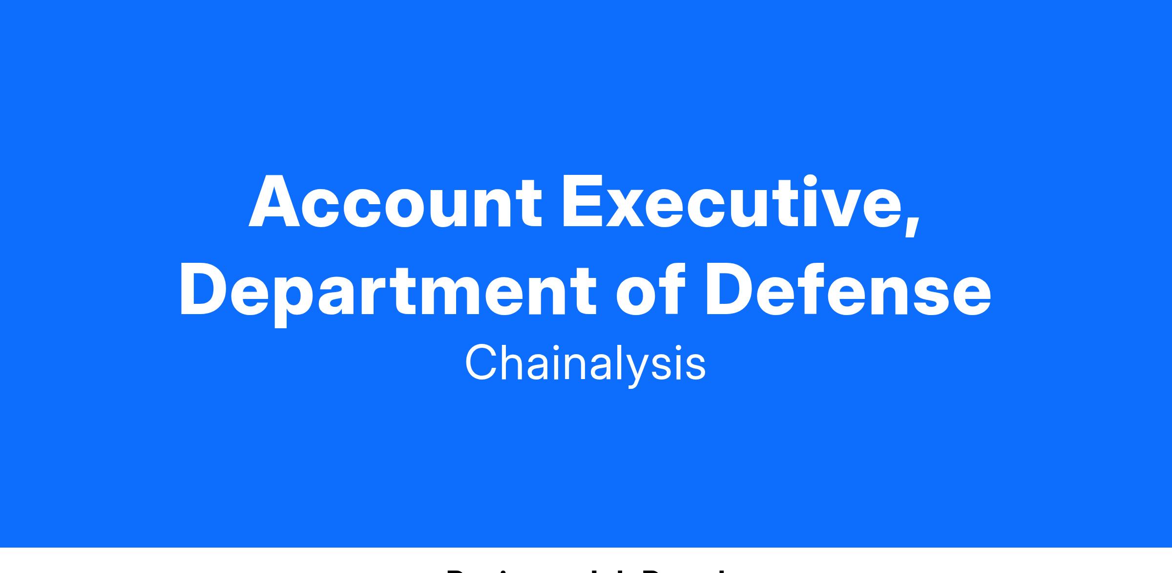 Our Account Executives for the public sector have existing and trustworthy reputations within government customers and prospects, and understand how to navigate complex procurement processes. As an Account Executive, you'll build Chainalysis' business within the Department of Defense.