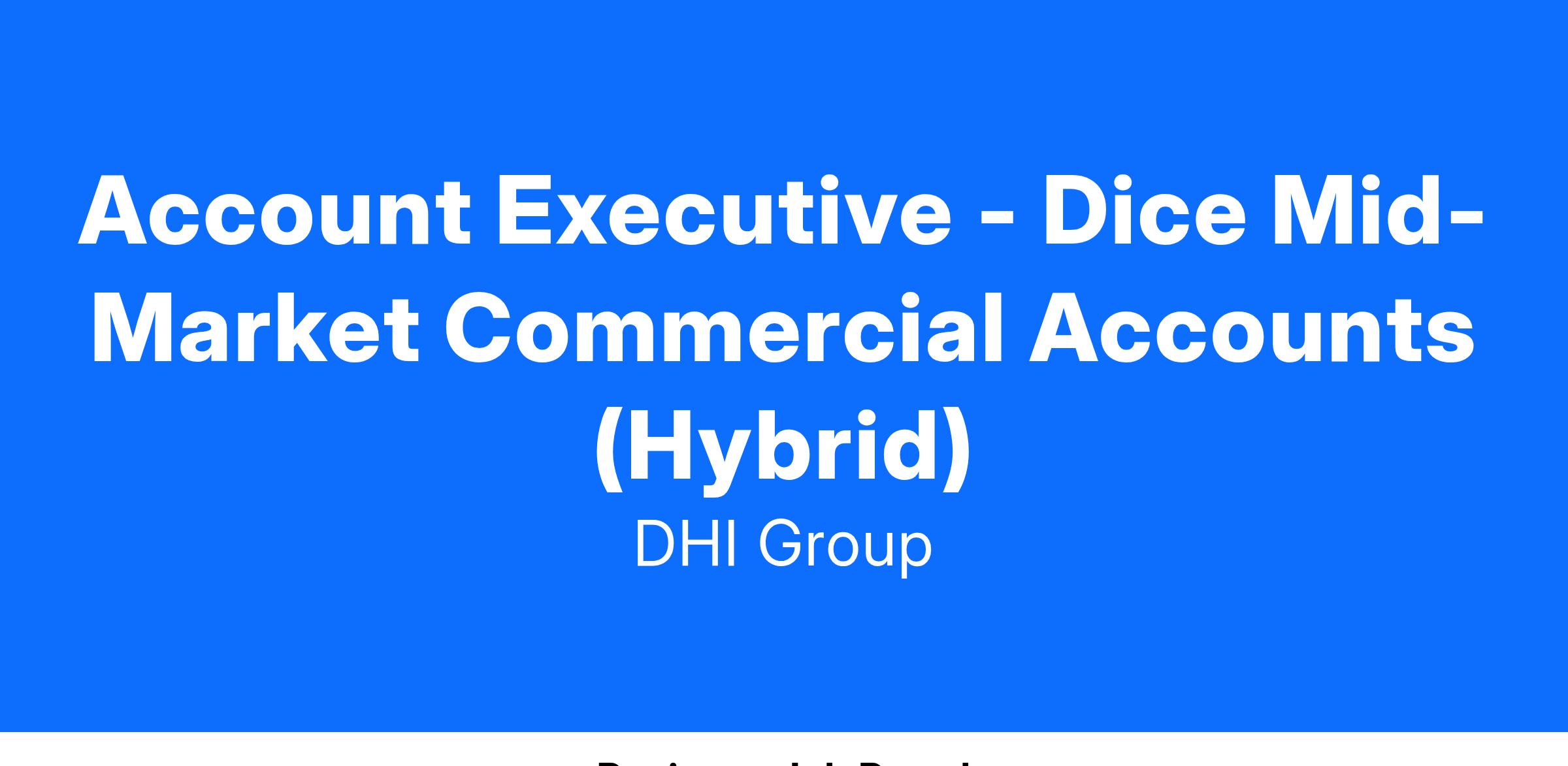 This role directly impacts revenue for yourself, the team, and for DHI. The goal is for you to be part of double-digit revenue growth for our next fiscal year and beyond. You will help Dice drive new clients and provide benefits to the Tech candidate community by offering new roles that may only be available in the Dice marketplace.