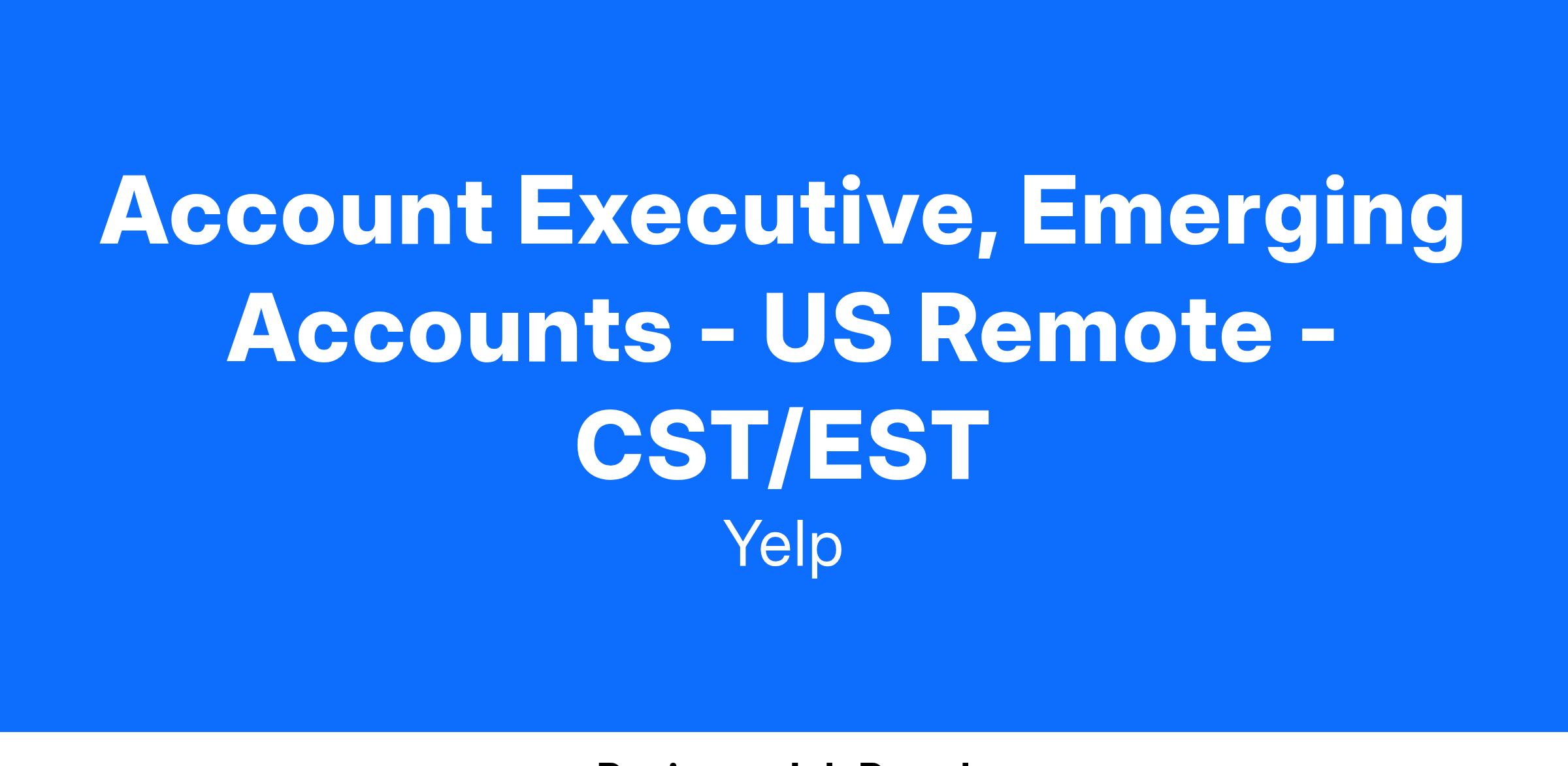 Account Executive, Emerging Accounts - US Remote - CST/EST