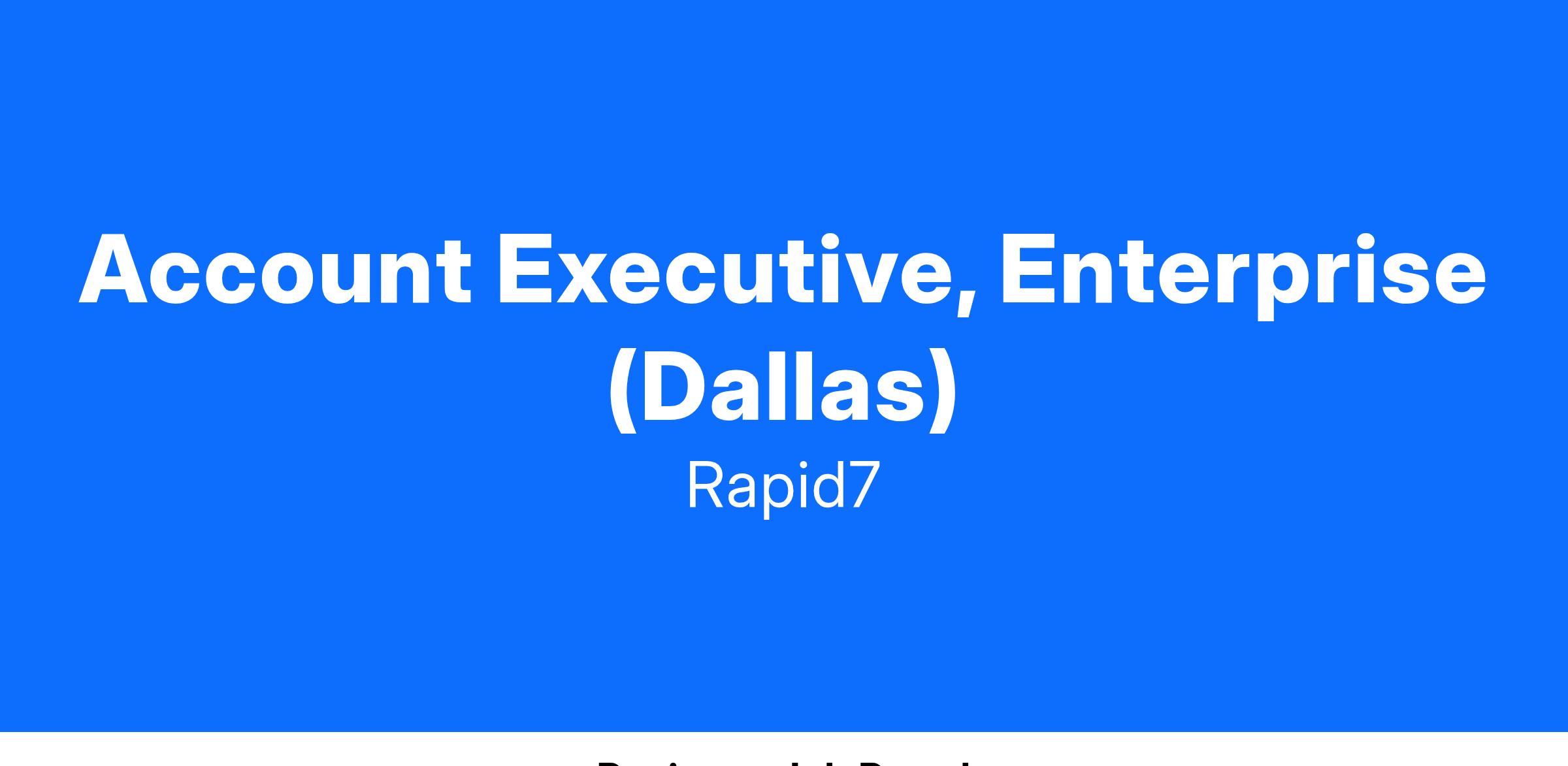 In this role, you will partner cross-functionally with internal teams to drive net-new and renewal business opportunities with enterprise accounts in TX, from initial prospecting through negotiation and contract close. This is a quota-carrying role responsible for selling solutions from our entire portfolio. Rapid7 has a history of promoting from within and our sales representatives have a number of opportunities to grow within the organization both as individual contributors and leadership roles.