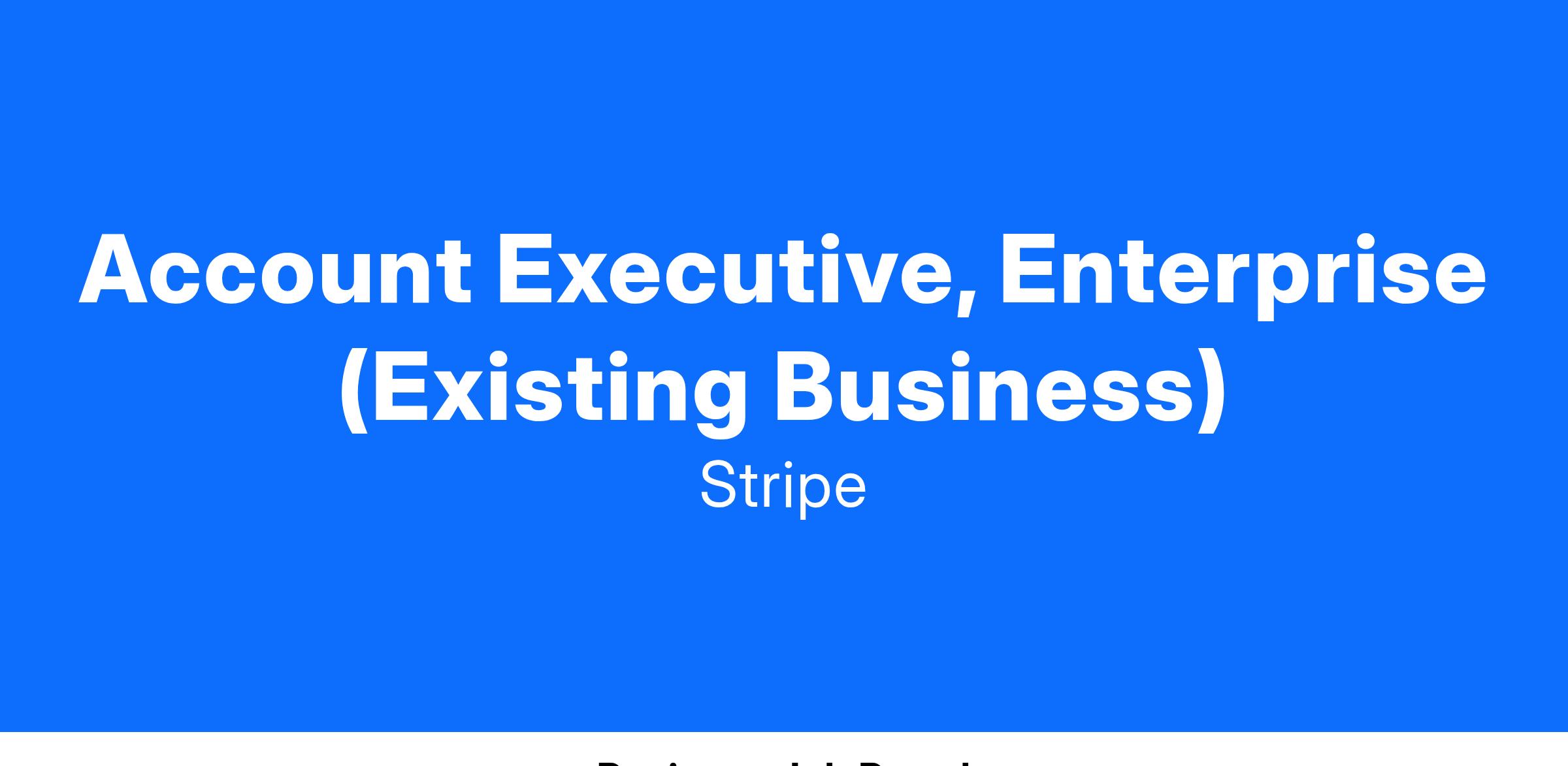 As an Account Executive, Enterprise at Stripe, you will drive Stripe’s future growth engine by building new relationships with prospective companies, turning them into happy Stripe users.
