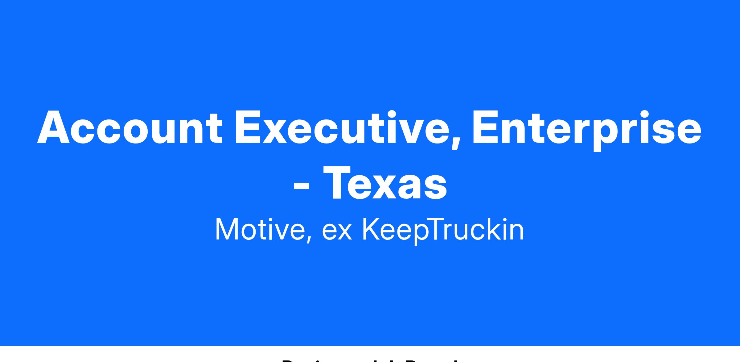 Our Enterprise Account Executives sell across multiple industries, including trucking, oil & gas, construction, agriculture, manufacturing, consumer transit, or any other business that requires a fleet of vehicles. You are receptive to feedback, have a willingness to learn, a strong technical aptitude, and a high attention to detail. Because of the collaborative nature of our Go-to-Market team, a win-as-a-team mentality is a must. In this high-energy role, you should be comfortable working in a fast-paced environment with high standards of quality.