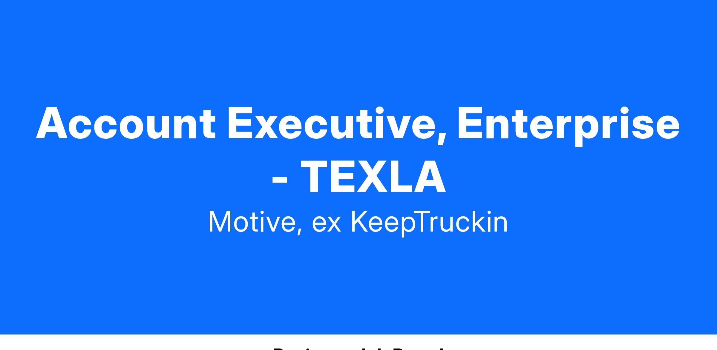 Our Enterprise Account Executives sell across multiple industries, including trucking, oil & gas, construction, agriculture, manufacturing, consumer transit, or any other business that requires a fleet of vehicles. You are receptive to feedback, have a willingness to learn, a strong technical aptitude, and a high attention to detail. Because of the collaborative nature of our Go-to-Market team, a win-as-a-team mentality is a must. In this high-energy role, you should be comfortable working in a fast-paced environment with high standards of quality.