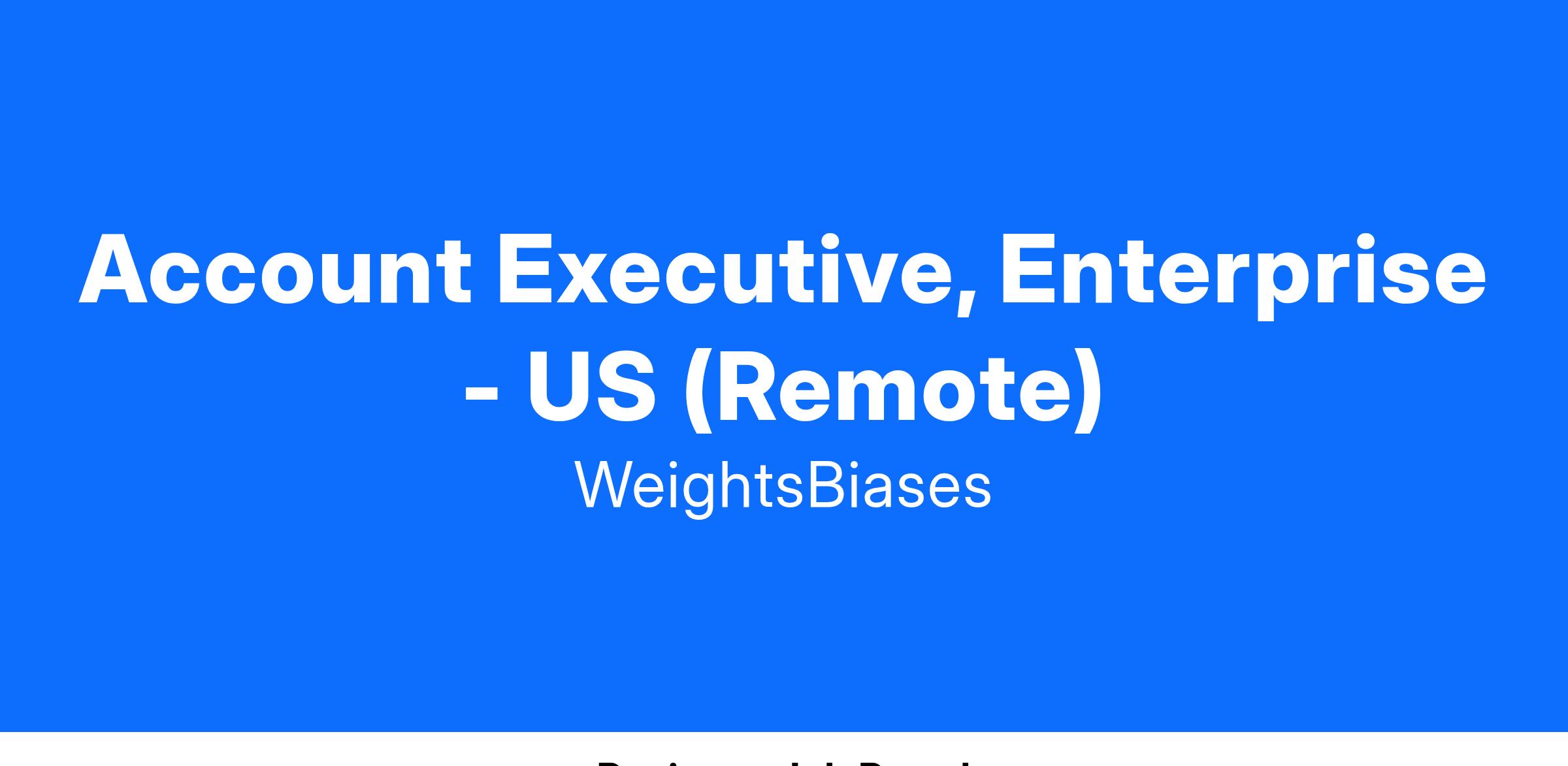 An Account Executive at Weights & Biases is a quota carrying, enterprise software sales position responsible for meeting and exceeding goals through generating and closing new opportunities while increasing awareness of Weights & Biases in the marketplace. We are looking for motivated, focused, and coachable sales professionals with experience across the full spectrum of the software sales cycle – prospecting, defining and articulating value proposition, pilot process management, business case development, negotiation and closing.