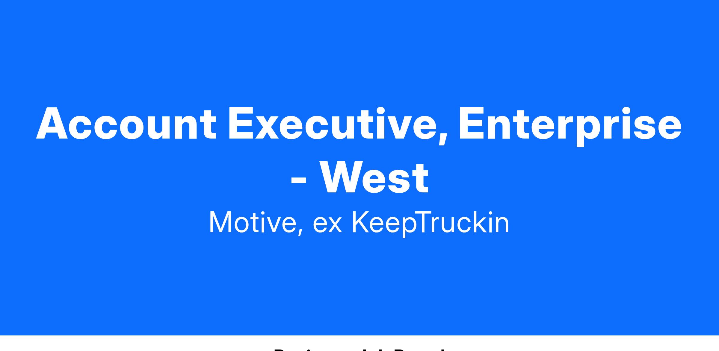 Our Enterprise Account Executives sell across multiple industries, including trucking, oil & gas, construction, agriculture, manufacturing, consumer transit, or any other business that requires a fleet of vehicles. You are receptive to feedback, have a willingness to learn, a strong technical aptitude, and a high attention to detail. Because of the collaborative nature of our Go-to-Market team, a win-as-a-team mentality is a must. In this high-energy role, you should be comfortable working in a fast-paced environment with high standards of quality.
