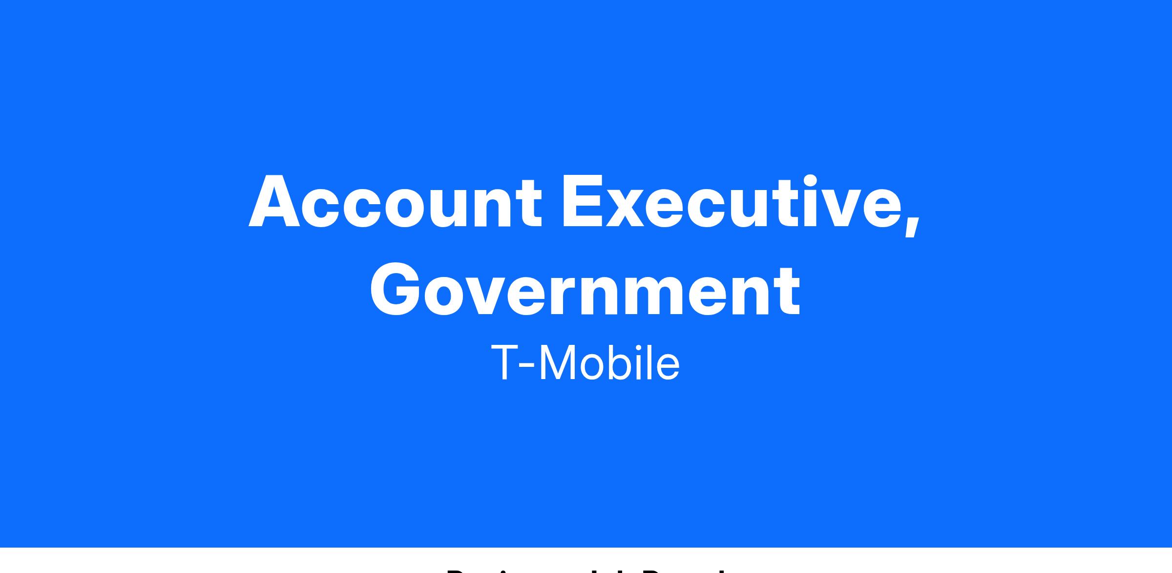 The Account Executive, Government position focuses on the customer life cycle, supporting the growth of State and Local Government. The primary responsibilities are to sell to State and Local accounts, renew contracts, increase customer satisfaction, and improve revenue while driving customer retention activity. As an Account Executive, your performance is evaluated on your ability to meet sales expectations and maintain a high level of job performance through a variety of metrics focused on building the business. The quality and method of work must be consistently completed in accordance with T-Mobile's core values.
