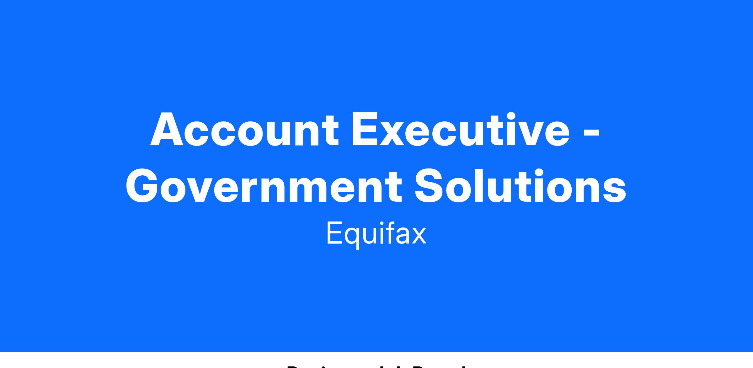 Equifax is seeking an experienced and results-oriented Account Executive to join our growing Public Sector team in Equifax Workforce Solutions (EWS). In this role you will have the opportunity to work closely with many other teams in our Government Solutions business to help develop and close new sales opportunities. Equifax Government Solutions can help government agencies increase efficiency and deliver on their mission. We offer the data, insights, and tools to help reduce costs, minimize risk, and streamline the customer experience.