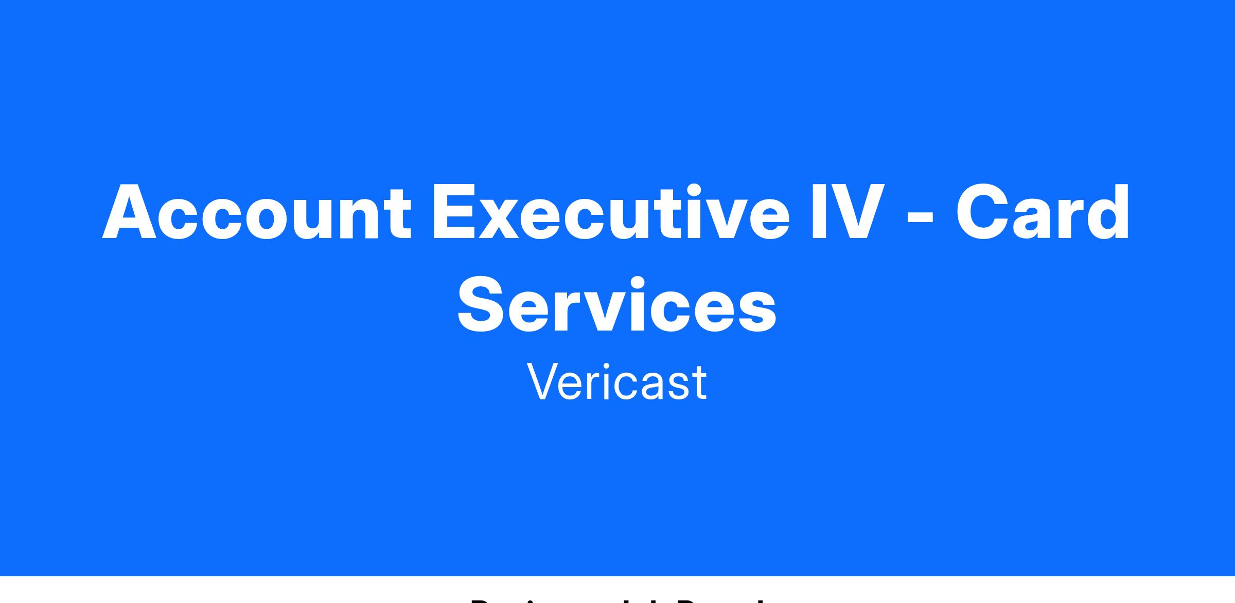 The Account Executive IV - Card Services will drive growth and revenue through expert consultation and direct strategic sales within the financial services sector. This highly skilled individual will leverage deep knowledge of card programs—including credit, debit, prepaid, and ATM services—and sales acumen to engage with financial institutions, deliver impactful presentations, and ensure the seamless implementation of complex card service solutions. This is a client-facing role that requires both strategic vision and tactical expertise in the payments industry, strong relationship-building skills, and the ability to collaborate cross-functionally to support business objectives.