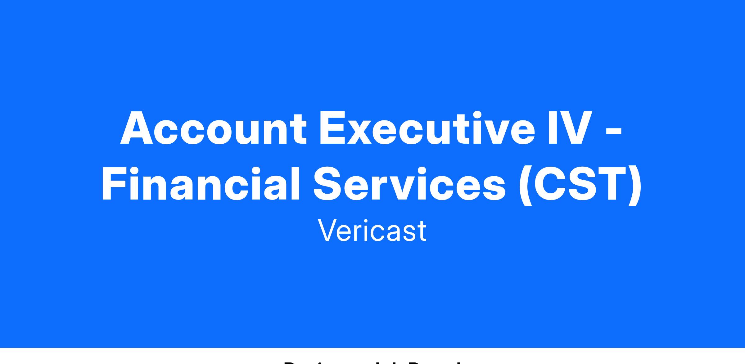 Vericast is a high growth company with the leading financial institution marketing solutions in our niche markets. Being an Account Executive at Vericast is an exciting and challenging role. This is an ideal position if you have 7-10+ years of successful sales with a focus on building relationships and creating opportunities with new and existing clients.