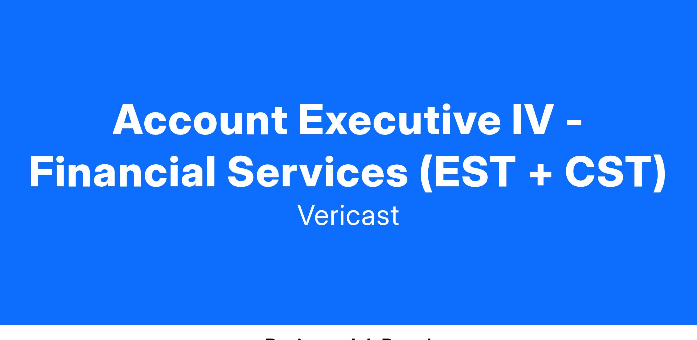 Vericast is a high growth company with the leading financial institution marketing solutions in our niche markets. Being an Account Executive at Vericast is an exciting and challenging role. This is an ideal position if you have 7-10+ years of successful sales with a focus on building relationships and creating opportunities with new and existing clients.