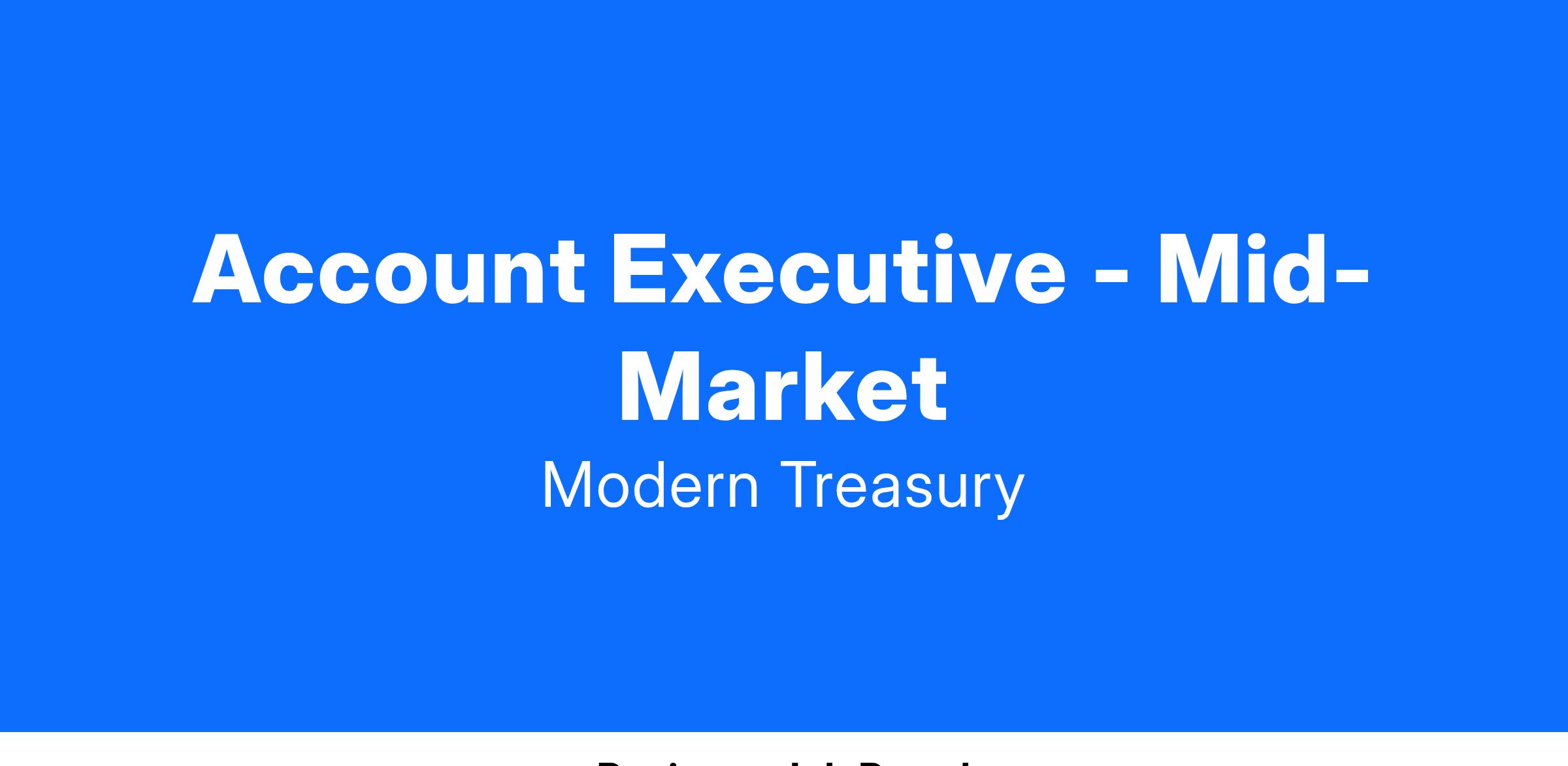 We’re looking for an Account Executive to join our Mid Market sales team. We’ve built an API-first infrastructure platform that enables companies to build products that move money. Our sales are typically highly technical, involving stakeholders across product, engineering, finance, and compliance.
