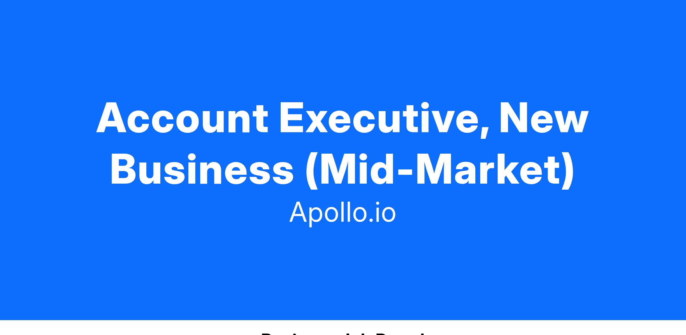As an Account Executive at Apollo.io, you'll play a pivotal role in driving new business growth for our foundational New Business sales team. Your mission is to identify high-value prospects, initiate meaningful conversations, and close deals that drive customer success. Leveraging Apollo.io’s state-of-the-art sales tools (including our own platform), you’ll become an expert in outbound prospecting and solution selling to help businesses achieve their goals