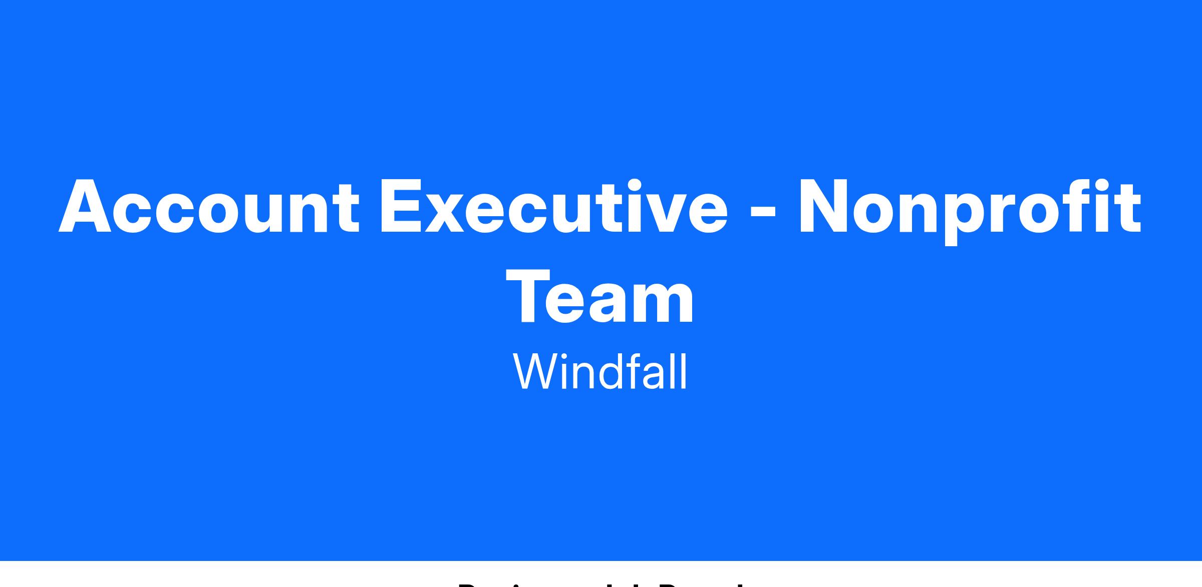 As an Account Executive on the Nonprofit team, you will be responsible for driving new business and building on our already impressive list of customer logos across a variety of industries. Innovative organizations use Windfall, including leading Healthcare organizations like Providence Health and Services, Cedars Sinai, Boston Childrenโs Hospital, leading Higher Education organizations like University of Michigan and University of Minnesota, and national organizations like Make-A-Wish America, Habitat for Humanity International, and Sierra Club. Windfall helps these customers market to and engage their donors and customers. As the face of our sales organization, you will be expected to sell our industry leading data enrichment offerings to customers through a consultative sales engagement, disrupt previously held notions when necessary, and build consensus for Windfall across the customerโs organization to secure deals.