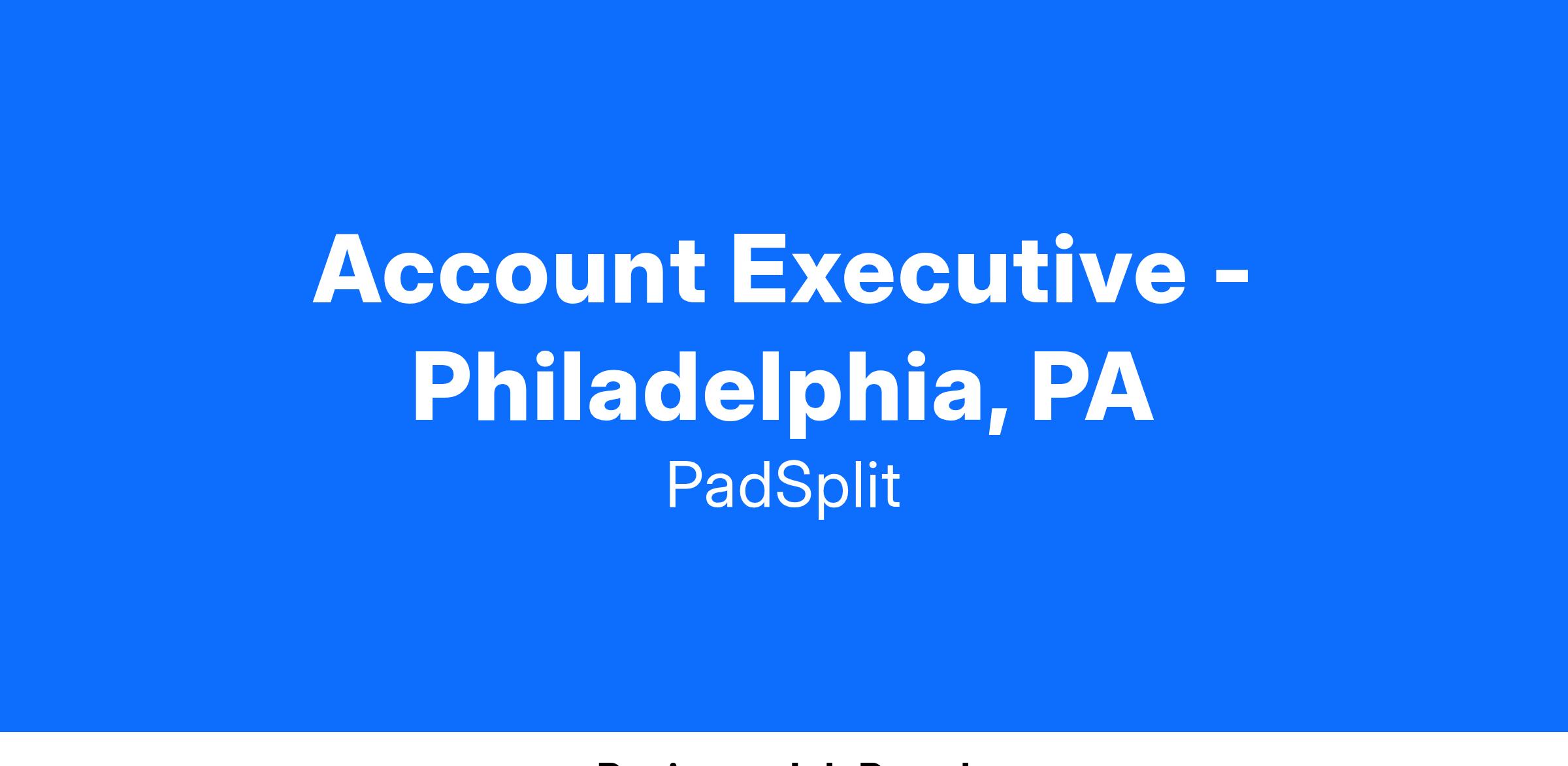 PadSplit is hiring for an Account Executive to expand our marketplace by engaging traditional property owners to become PadSplit Hosts. This role is critical in helping homeowners unlock additional income by listing their properties, while addressing housing affordability by creating more shared housing opportunities in the Philadelphia, PA market.