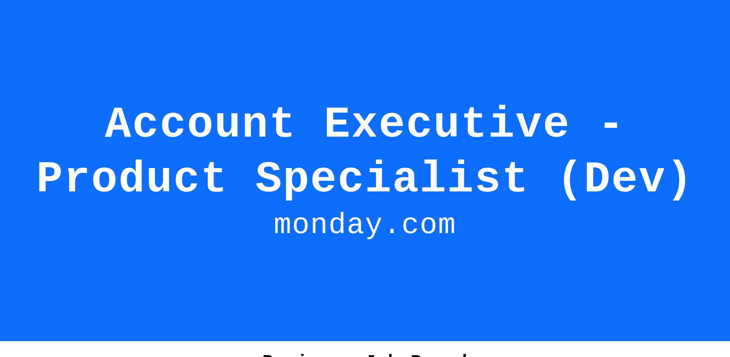This is the start of something BIG! As an Account Executive for our Dev product (our newest growing product line) you will be responsible for scaling monday Dev sales by providing expert-level industry, sales, and product knowledge to our customers - focusing on the value our monday.com product delivers as part of our WorkOS platform.