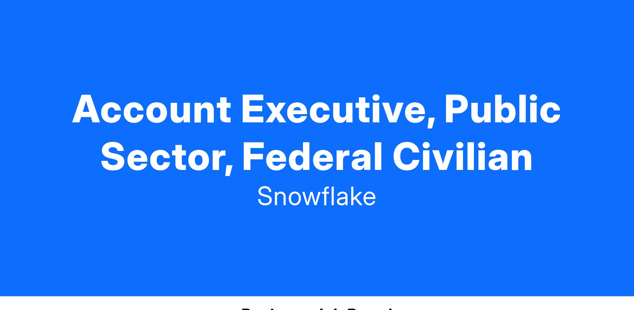 The Snowflake Public Sector team is expanding, and we're seeking a results-driven Account Executive with deep expertise in the Federal Civilian market.