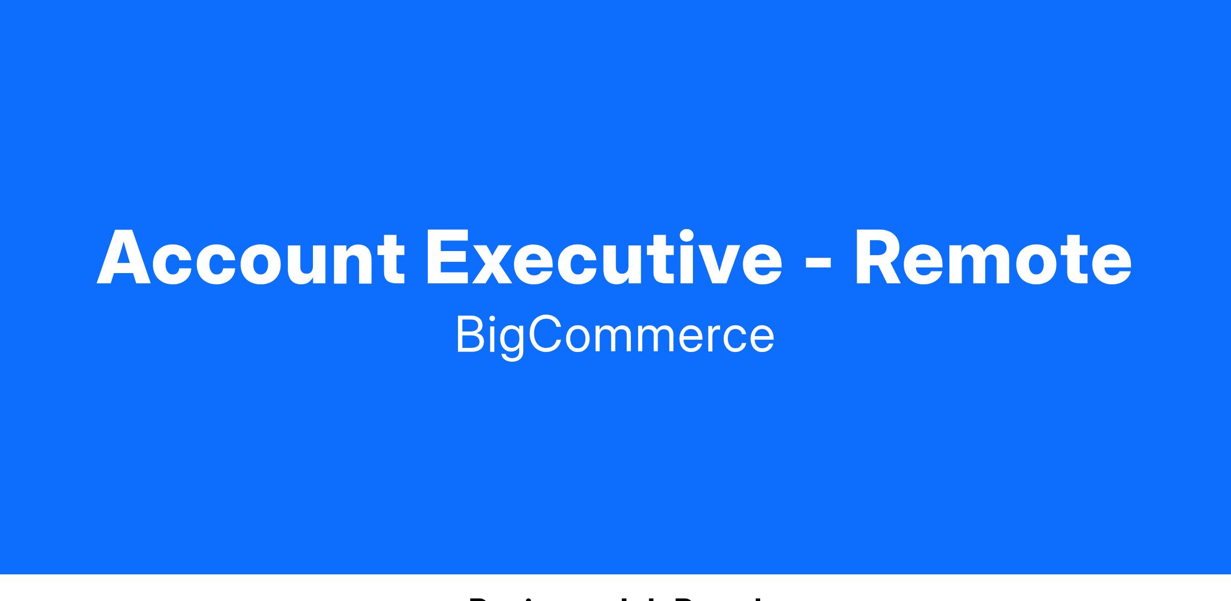 We are seeking a driven Account Executive to join our growing sales team. In this role, you will work with prospects and partners and will be responsible for driving both new and expansion revenue for BigCommerce. This role will work from a BigCommerce office location, and will be surrounded by a team of motivated Account Executives and Sales Leaders committed to enabling success.