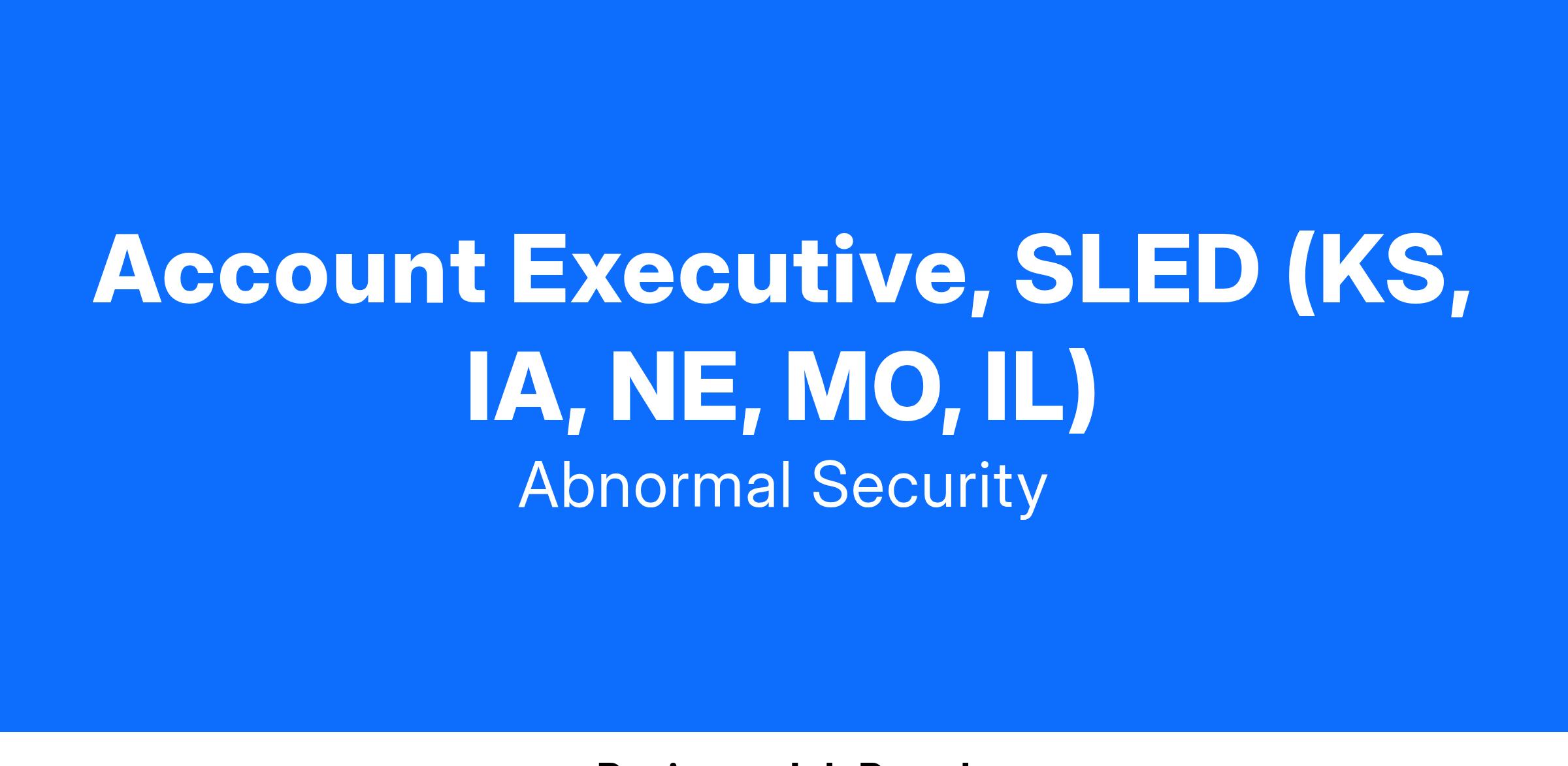 Abnormal Security is looking for an Enterprise SLED Account Executive to join our team. In this role, you will sell Abnormal Security Solutions to State/Local Government & K-12 Education (SLED) accounts (>2k mailbox organizations) in your defined territory. The ideal candidate will bring a hunter mentality, a passion for cybersecurity, and proven team-selling experience.Β