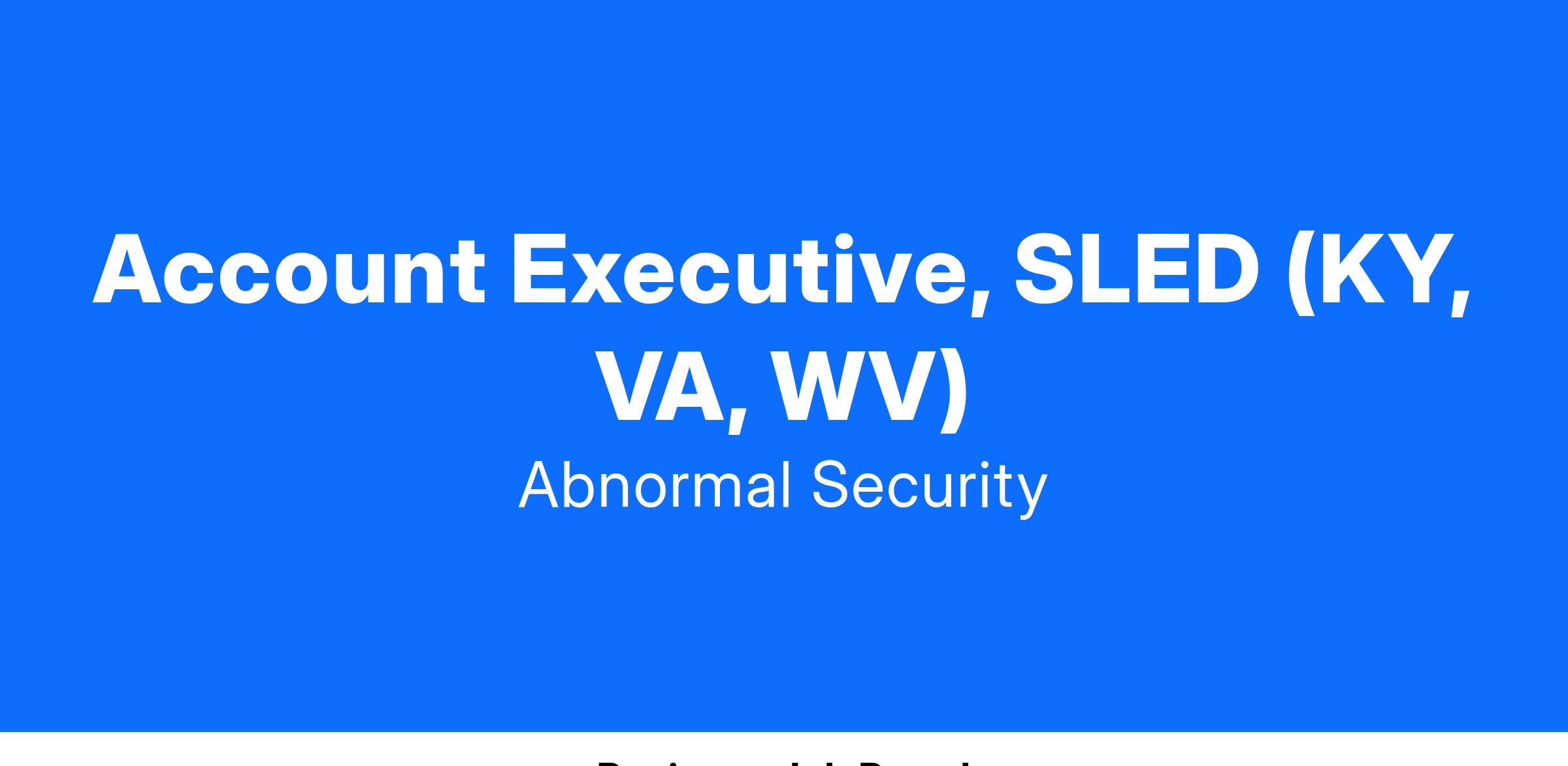 Abnormal Security is looking for an Enterprise SLED Account Executive to join our team. In this role, you will sell Abnormal Security Solutions to State/Local Government & K-12 Education (SLED) accounts (>2k mailbox organizations) in your defined territory. The ideal candidate will bring a hunter mentality, a passion for cybersecurity, and proven team-selling experience.Β