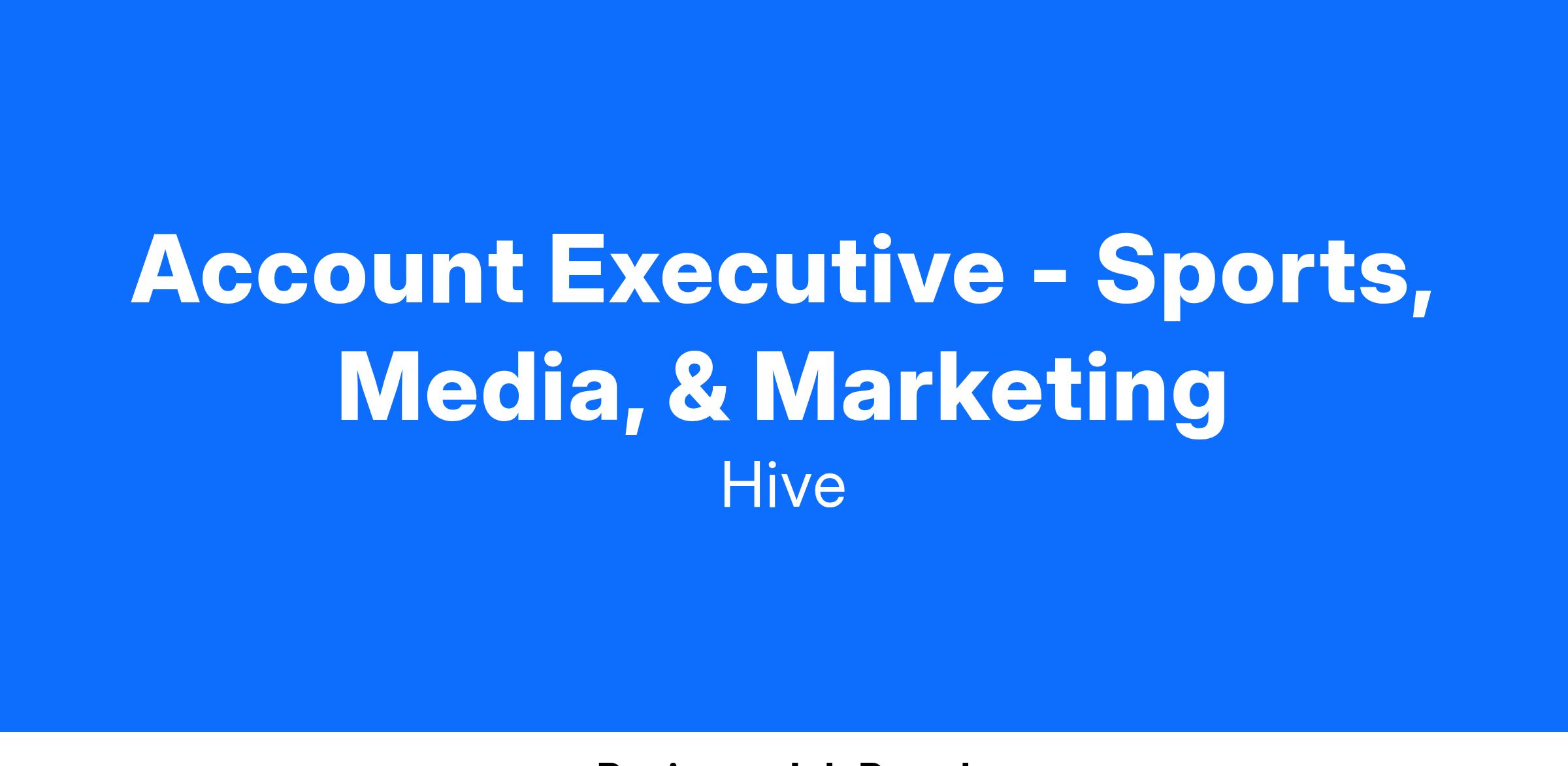 We are looking for a Senior Account Executive to join our Business Development team in the Sports, Media, & Marketing business unit. At Hive, our Business Development team is responsible for commercial deployment of all the groundbreaking technology we are building. As a Senior Account Executive, you will work closely with the executive team to develop new relationships, evaluate new markets and use cases for our technology, and identify means of growth. Day to day, you will connect with existing and potential clients, communicate our solutions to a broad range of audiences, and break down barriers in the enterprise market. You will be expected to keep up with multiple accounts at a time and serve as a key reference for our existing clients. You will apply your strong quantitative skills to analyze priorities, metrics, and demand generation strategies in order to relentlessly pursue new leads. Our Business Development team is a full-service special forces team that is willing to do anything and everything needed to move the business forward.