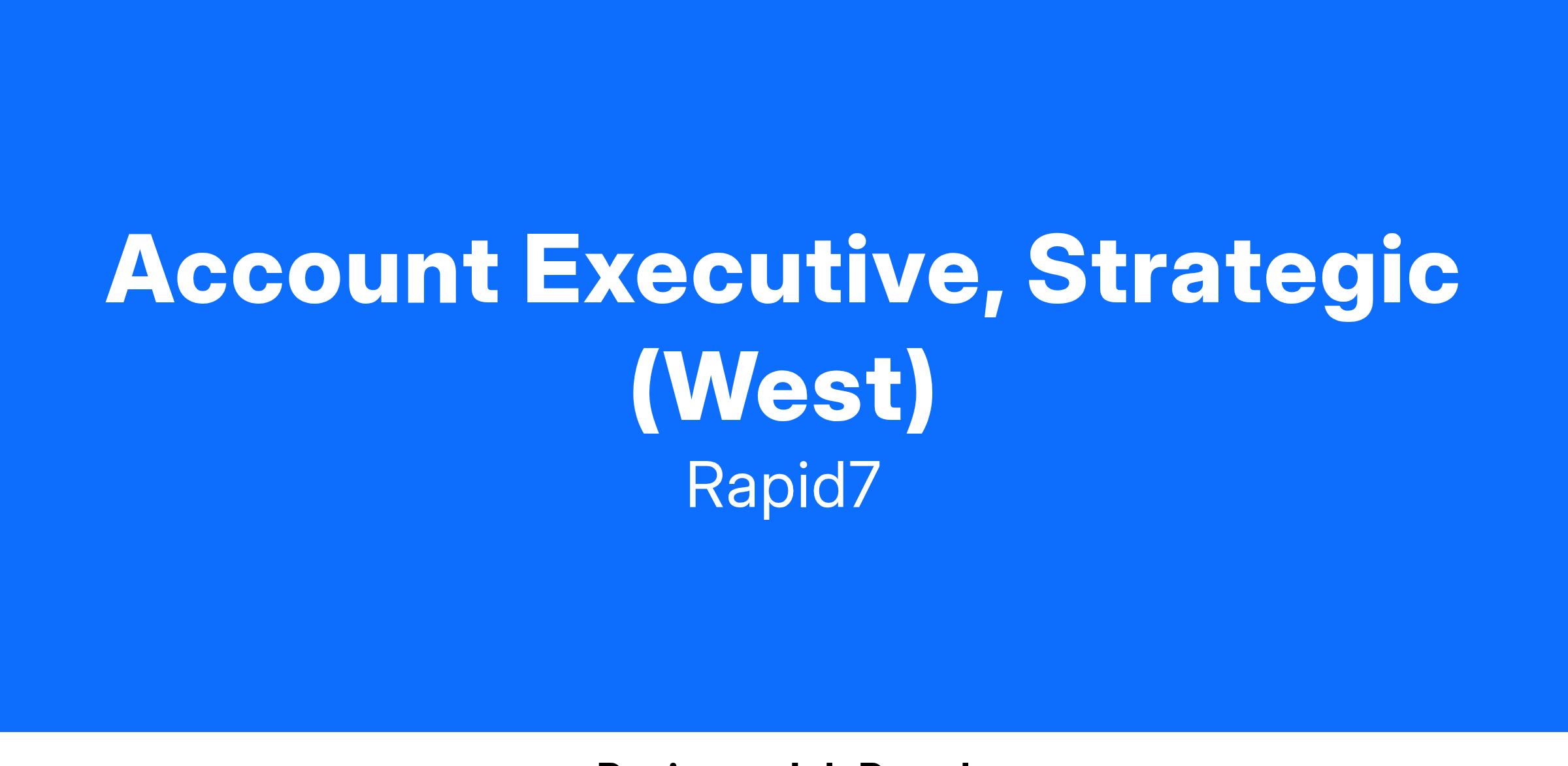 Rapid7’s Sales team is responsible for driving business at strategic organizations across North America. You will cover the West territory as part of our West Strategic Sales team. We set you up for success by providing best-in-class sales enablement training focused around our industry and how to sell our product portfolio, along with follow-up training and coaching sessions paired with sales process and methodology training.Our tools include ZoomInfo, LinkedIn Sales Navigator, Gong, Salesloft, and Salesforce to help you remain competitive and uncover new business opportunities.