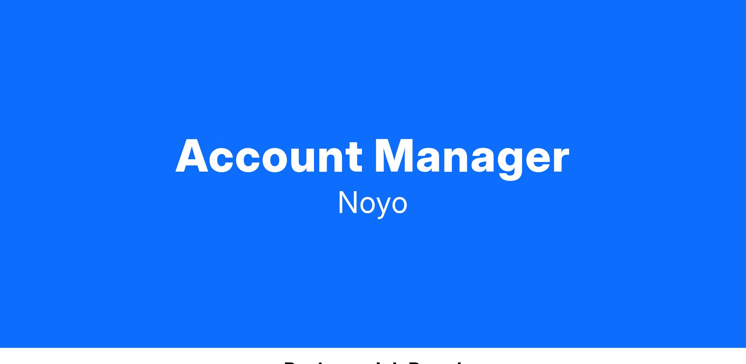 - Account Managers at Noyo are responsible for managing the strategic partnership, retention, renewals and expansions of existing Noyo accounts by crafting compelling expansion and ROI stories. You will act as the customer’s key strategic partner, driving growth and expansion of their reliance on Noyo as a key vendor to their overall business success.
