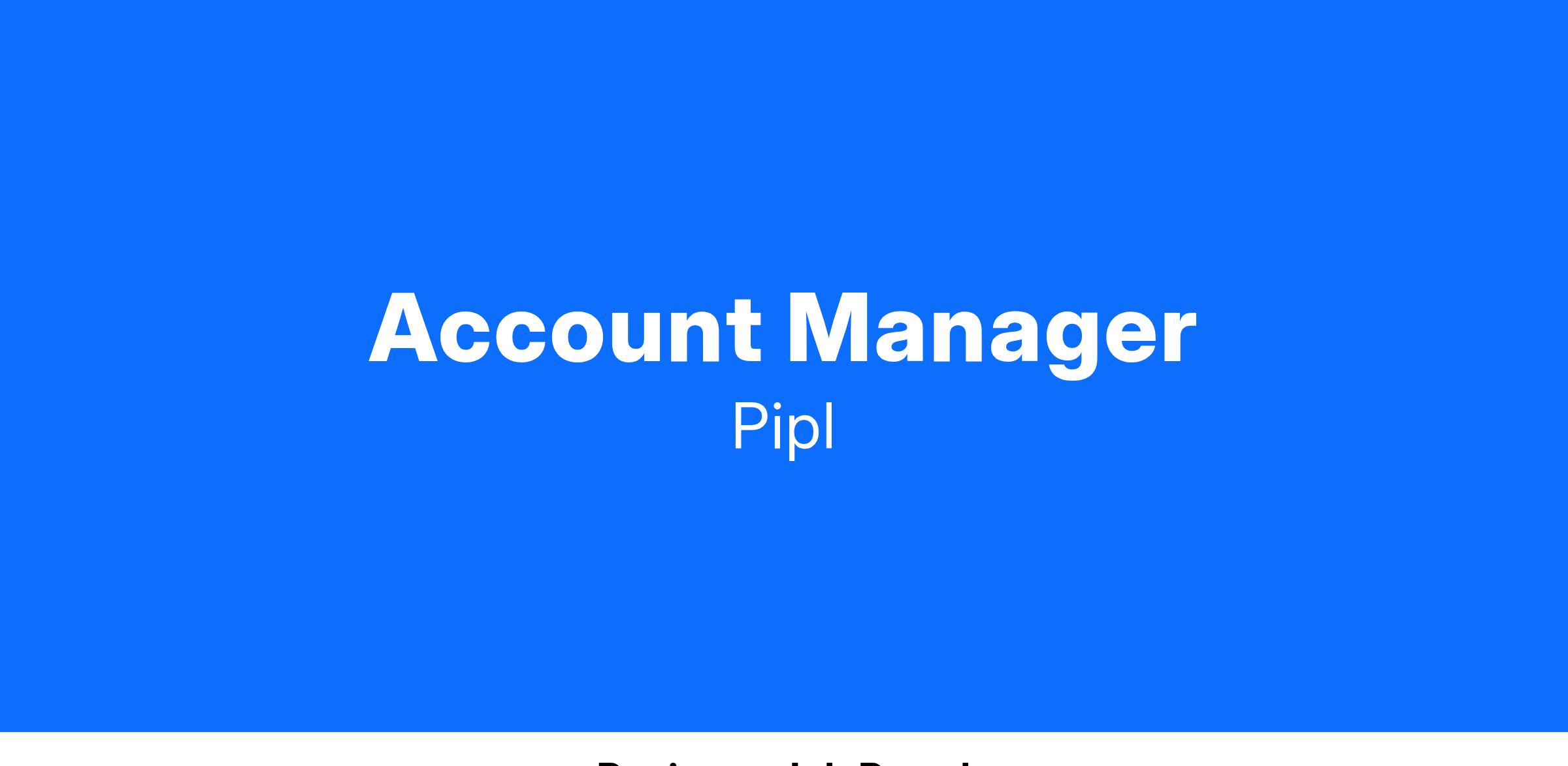 The Account Manager is accountable for the contract renewal and upsell opportunities of their assigned customer base. This role is focused on building long-term Client value in our mid markets through developing trusted relationships, contributing to the P&L of new and existing business at the Client, and promoting new strategic initiatives that align Pipl’s solutions to the client’s needs and values. You will be measured on logo and revenue attrition, growth and qualified new business opportunities including and renewals.