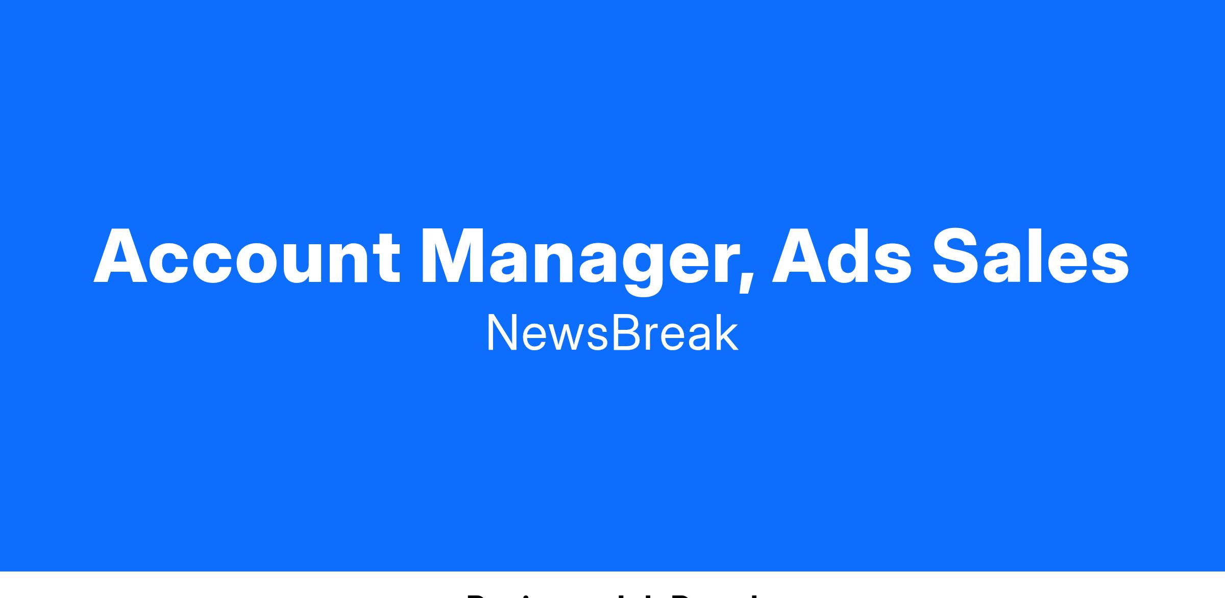 NewsBreak is looking for a sales-driven Account Manager to enhance our Ad Platform team. This role involves converting existing sign-ups to paid advertisers, managing client onboarding, and identifying high-value opportunities for account management. The successful candidate will have a strong understanding of sales strategies and the ability to provide data-driven account management.
