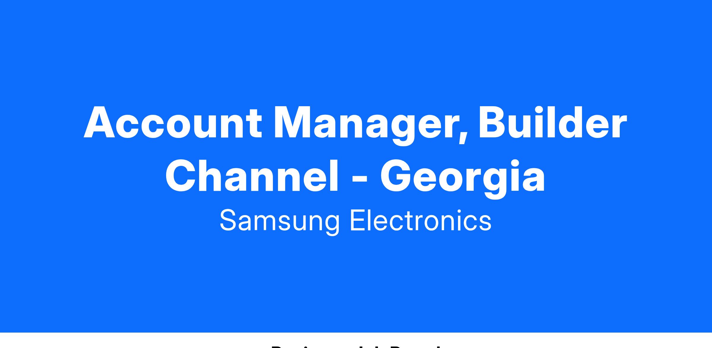 The Account Manager – Builder Channel will oversee the implementation of our dual brand strategy for all sales programs and pricing (quote-proposal management and negotiation) with regional & national market Builder Distributors and Builders. The role is accountable for achieving or exceeding annual sales and margin objectives. The position is responsible for training & cultivating all inside distributor sales personnel and working with outside distributor sales personnel in closing new business opportunities with single-family home builders, multi-family principals/contractors, and remodeling companies. The AM is responsible for ensuring all sales programs for all DA brands are known to distributor personnel and leveraged to drive sales revenue and market share. This front-line role will fortify sales relationships while helping to facilitate Samsung’s “order-to-cash” process with distributor administrative management to ensure compliance and efficient execution. The AM role converts regional execution plans into local market actions with trade customers and builders to achieve specific quarterly & annual goals and objectives.