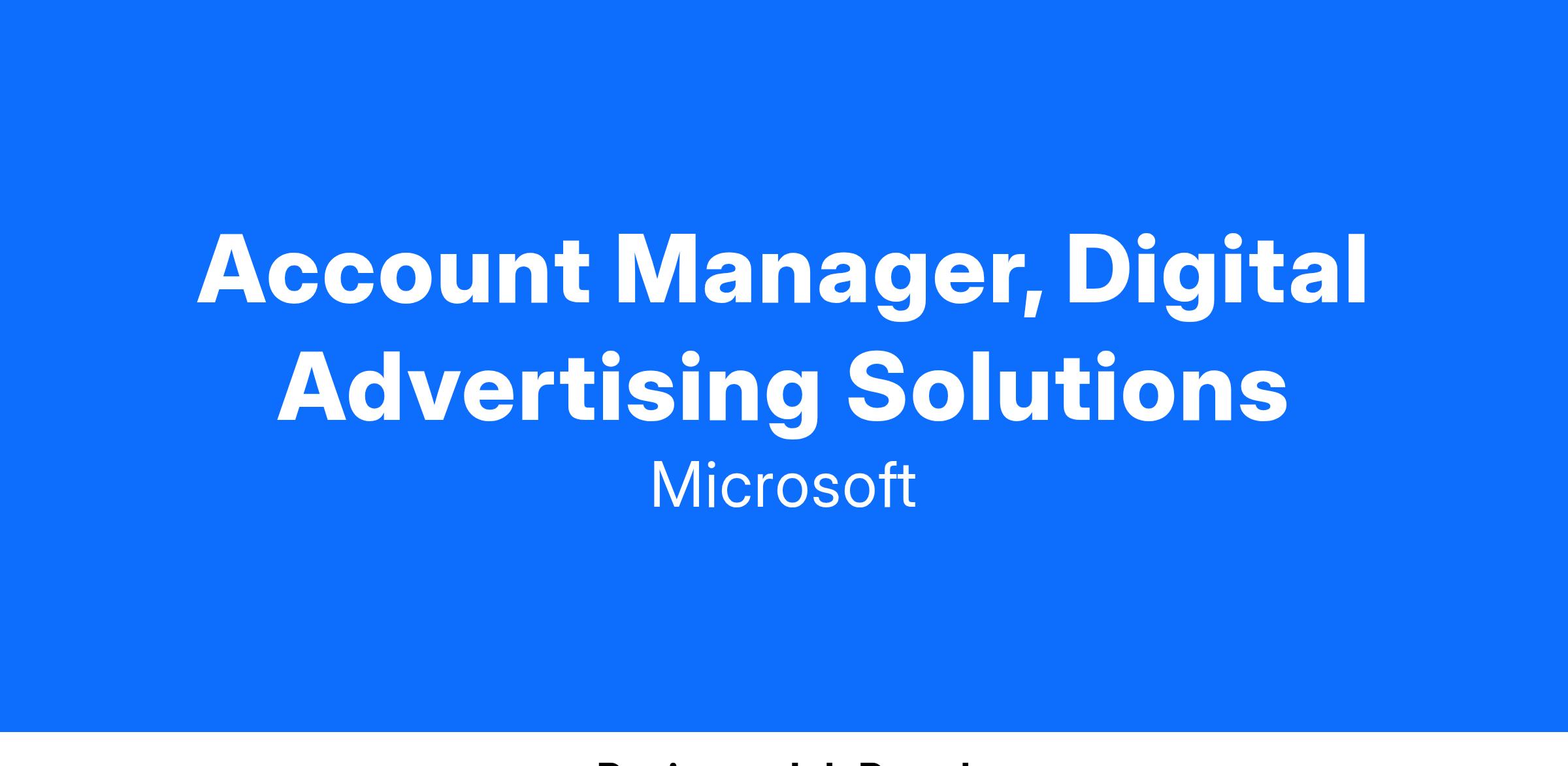 As an Account Manager (AM), you will enable Microsoft to better serve clients by applying obsession with what clients care about and need, ensuring our Microsoft Advertising story is valued and understood, and building and maintaining strong trusted-advisor relationships with day-to-day practitioner contacts at advertiser/agency. You will drive both revenue and client satisfaction across MSA’s performance solutions and as a core member of the account team, this opportunity will allow you to focus on driving data-driven optimizations aligned with client needs, executing campaigns and driving strong coordination or internal resources for excellence in execution of core tasks, account transitions, and client account health.