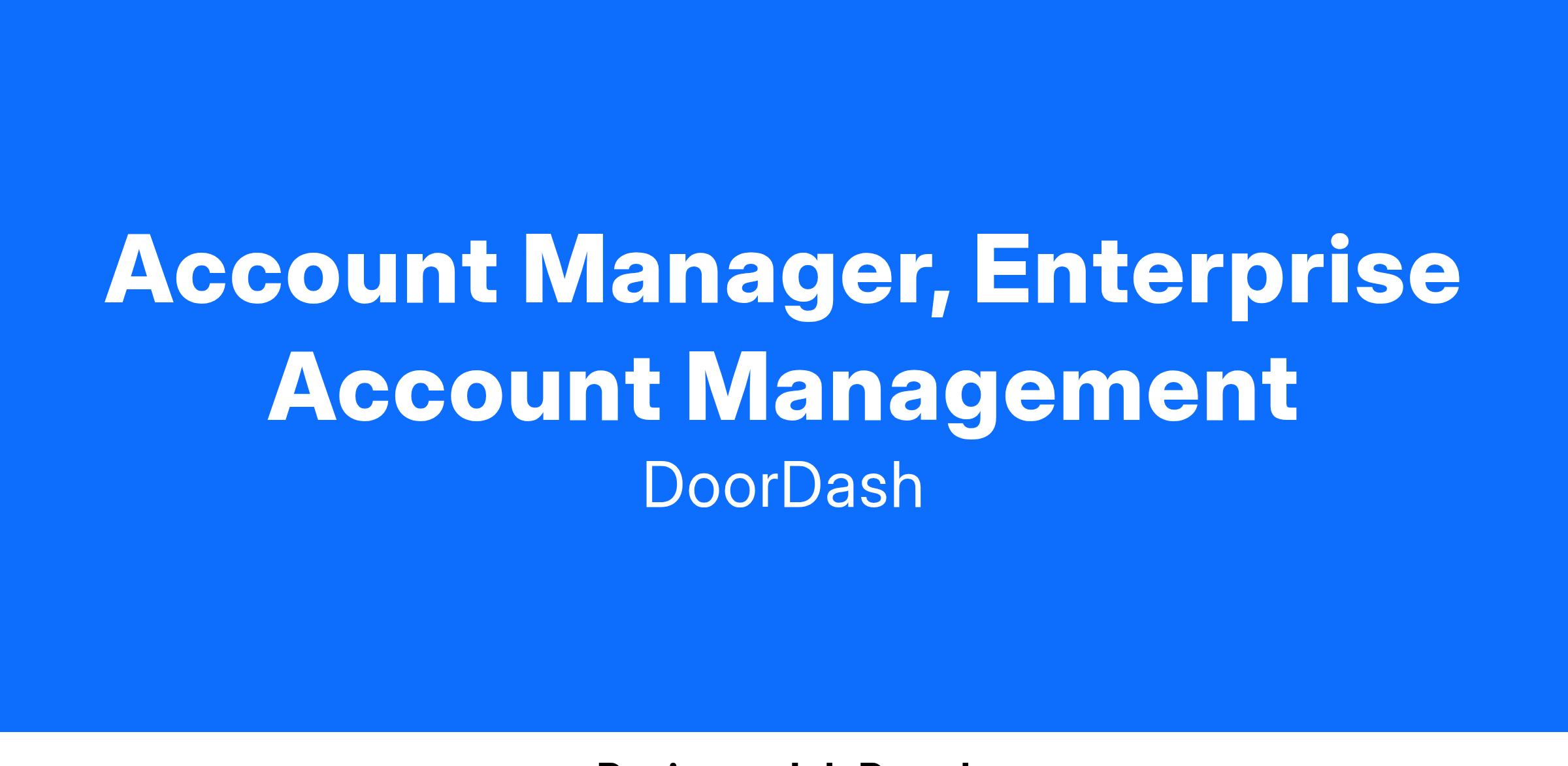 The DoorDash Enterprise Restaurants team is responsible for the strategic vision, acquisition, and development of the largest restaurant groups in North America. Given the scale of our key partners, this role is a critical piece of DoorDash’s growth and success in every market in which we operate. As an Account Manager on the Enterprise team, you will deliver and support a strategic growth and operational game plan for our top partners as well as work cross functionally with marketing, analytics, business development and product to drive our business forward.
