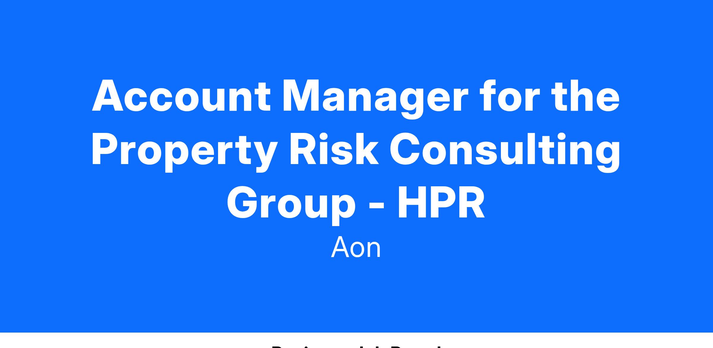 Account Manager for the Property Risk Consulting Group - HPR