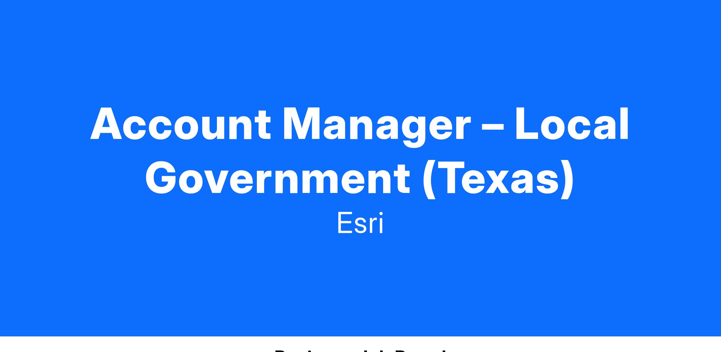 We invite you to bring your experience and passion for local government coupled with an understanding of applying geospatial technology to become an integral part of Esri’s state and local government account team. We’re looking for an individual who is customer oriented and a collaborative team player who enjoys identifying and implementing strategies that will radically improve the challenges organizations face. You’ll work closely with a team that helps new and existing local government customers optimize and expand adoption of Esri technology, identify new areas of growth, and share expertise that helps deliver on their mission.