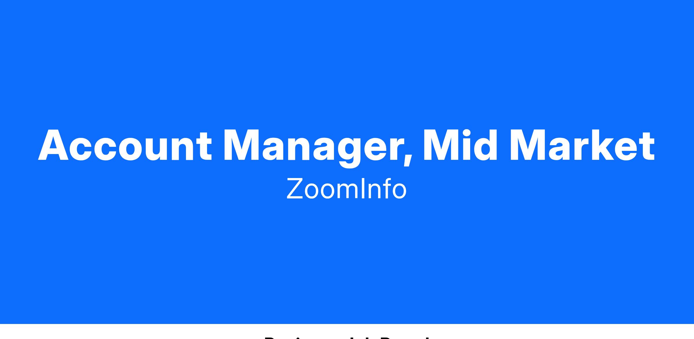 Are you ready to elevate your career as a Mid Market Account Manager with ZoomInfo? We’re looking for a passionate individual to join our team and take on the thrilling role of upselling and retaining a portfolio of Mid Market accounts (100-1,000 employee headcount companies). If you're energized by the prospect of driving business growth, exceeding goals, and being an integral part of a high-performing team, this is the opportunity you've been waiting for!