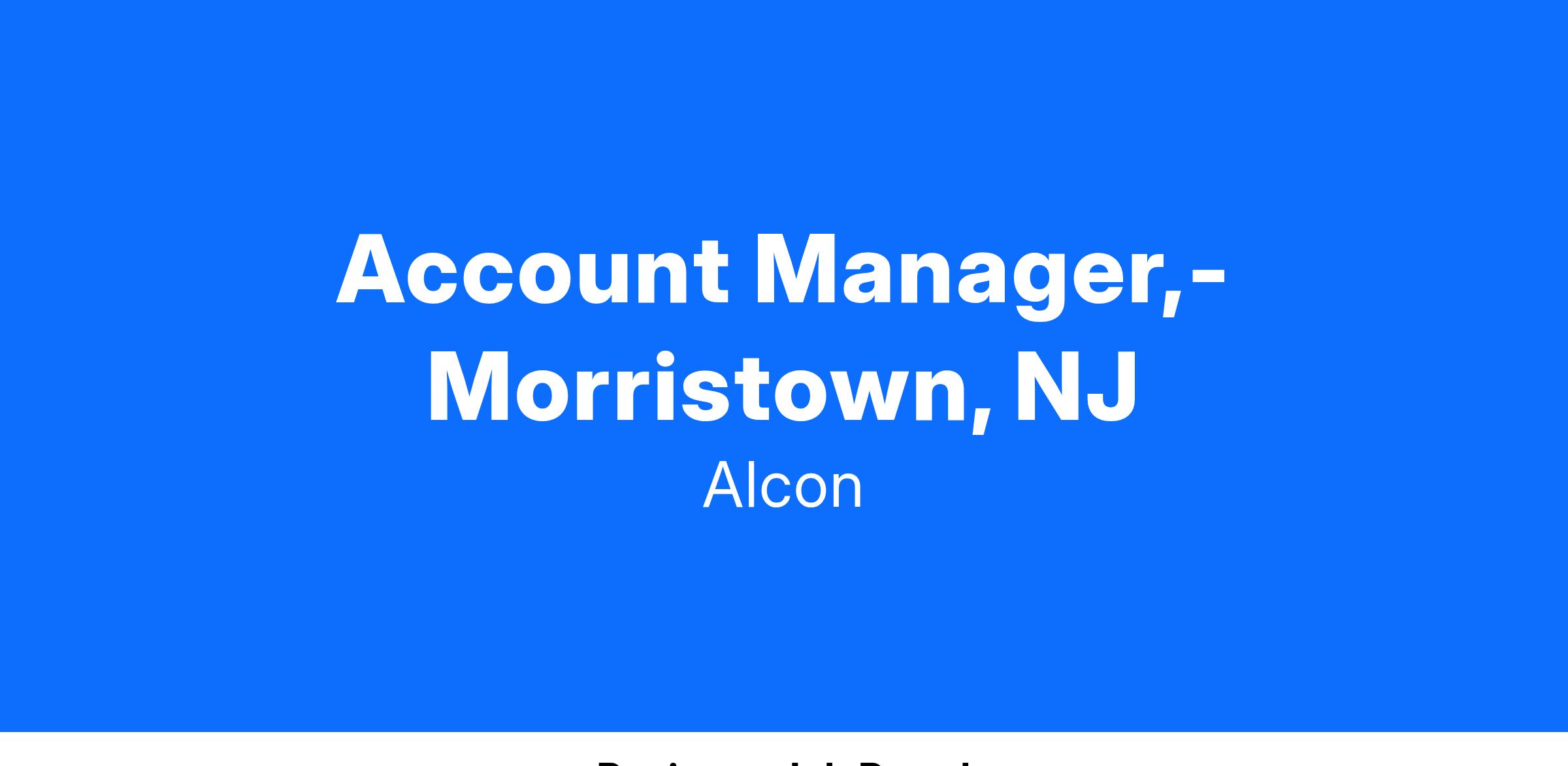 Account Manager- Morristown, NJ
