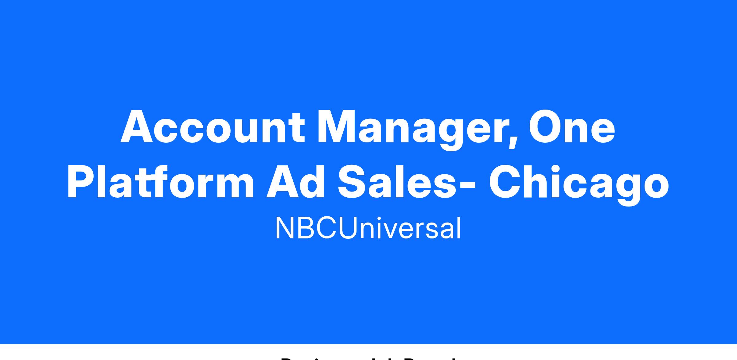 Work with the driven and highly motivated One Platform Ad Sales organization of NBCUniversal, one of the world’s leading media and entertainment companies. The Account Manager role is a strategic partner to Clients & Sales Account Executives.