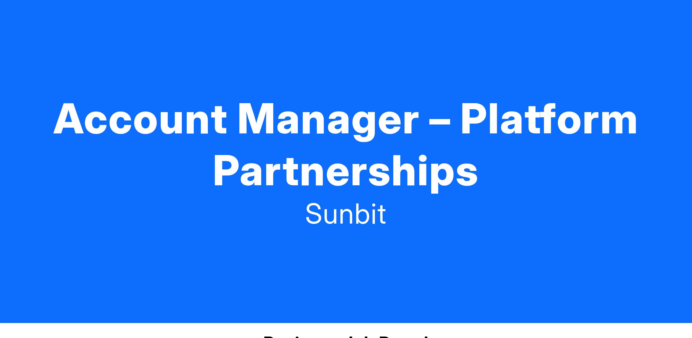 The Account Manager for Platform Partnerships is the primary point of contact for our partners, driving successful implementation and adoption of Sunbit’s payment products. This role combines client-facing expertise with operational know-how to deliver outstanding results, ensuring partners drive significant transaction volumes. As a trusted advisor, you will collaborate with both partners and internal teams to optimize customer outcomes and influence strategic decisions, while improving internal processes.