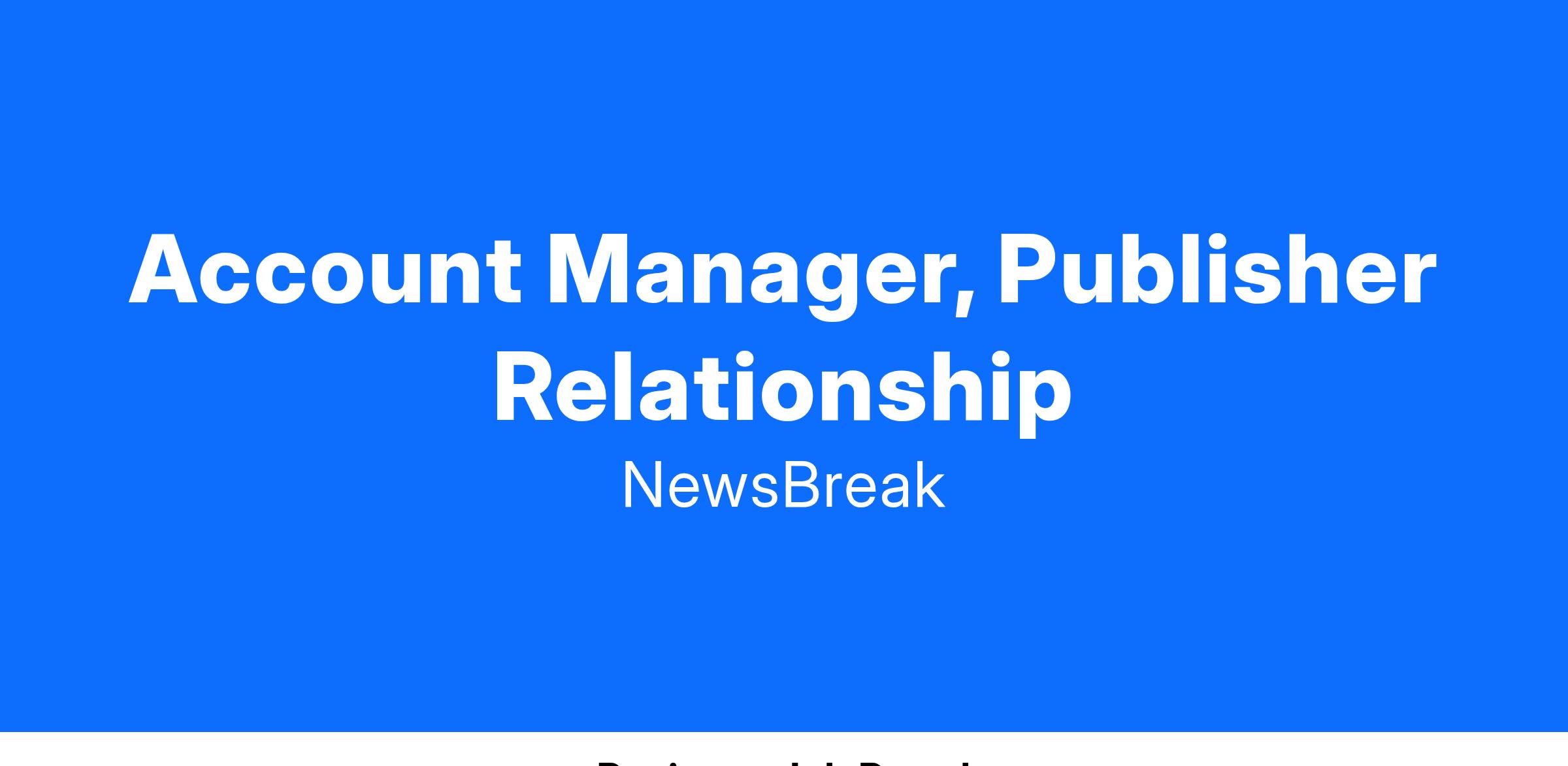 This role is part of the Business Development team at NewsBreak. This team identifies and sources new quality content partnership opportunities across the US. In order to do this, we build strong relationships with content partners that range from large media groups to small local publications and individual content creators. The Publisher Relationships Manager will own a portfolio of partners, ensuring the success of the relationship and projects associated. In addition, the Publisher Relationships Manager will find ways to maximize partner engagement, revenue opportunities and leverage cross-disciplinary internal teams to provide strategic counsel and insight. The role will require an individual who is proactive, not afraid to get his/her hands dirty, and is comfortable navigating through complex environments.