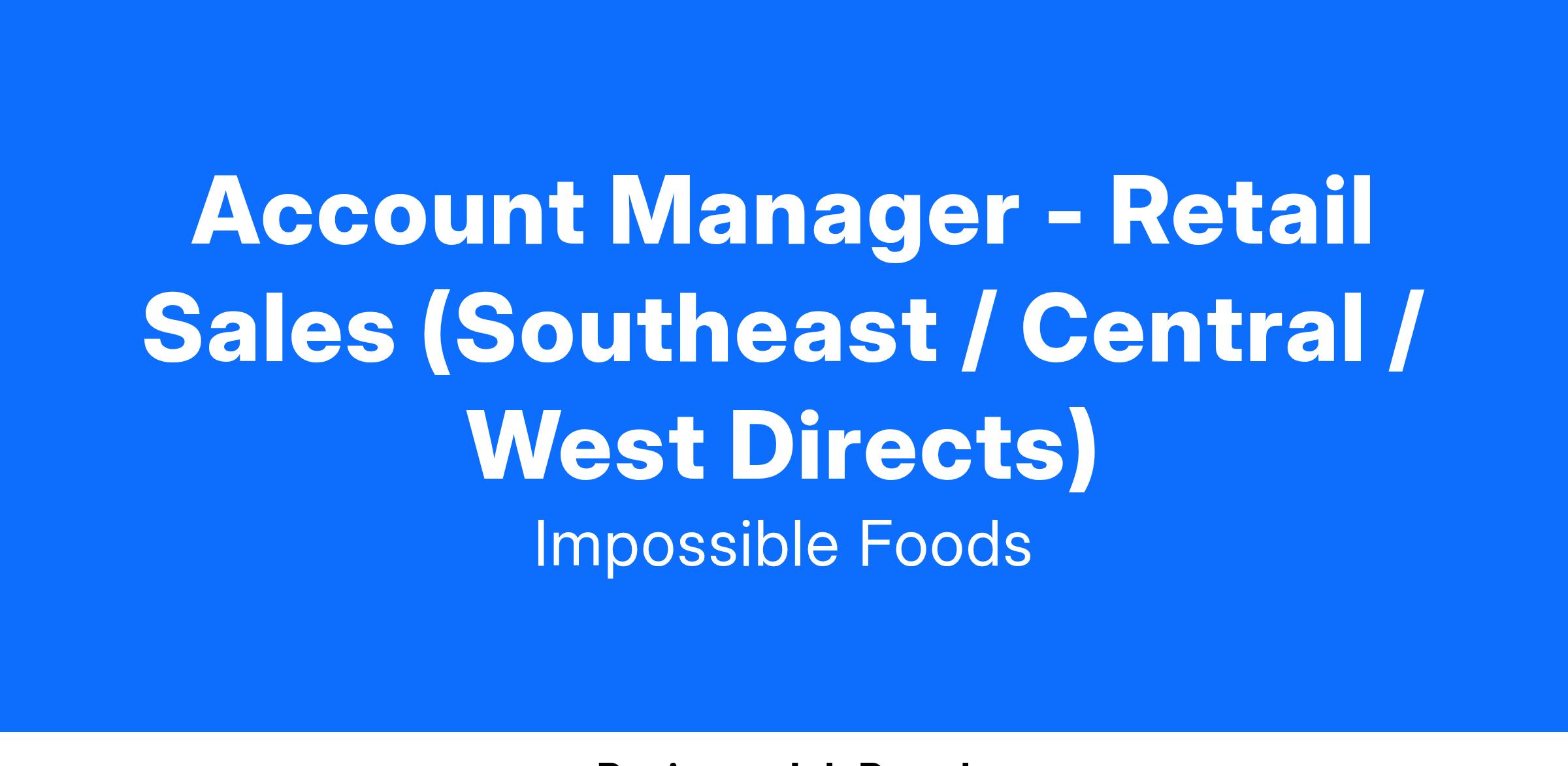 The Account Manager – Retail Sales is instrumental to the growth and scale of Impossible Foods’ business in alignment with the corporate strategy. This position will be the key day to day point of contact in leading customer relationships, developing and budgeting trade promotions, and achieving overall sales goals while also collaborating closely on shopper marketing programs. This position can work remotely, with a preference to the South or Texas, and will report to the Director of Retail Sales.