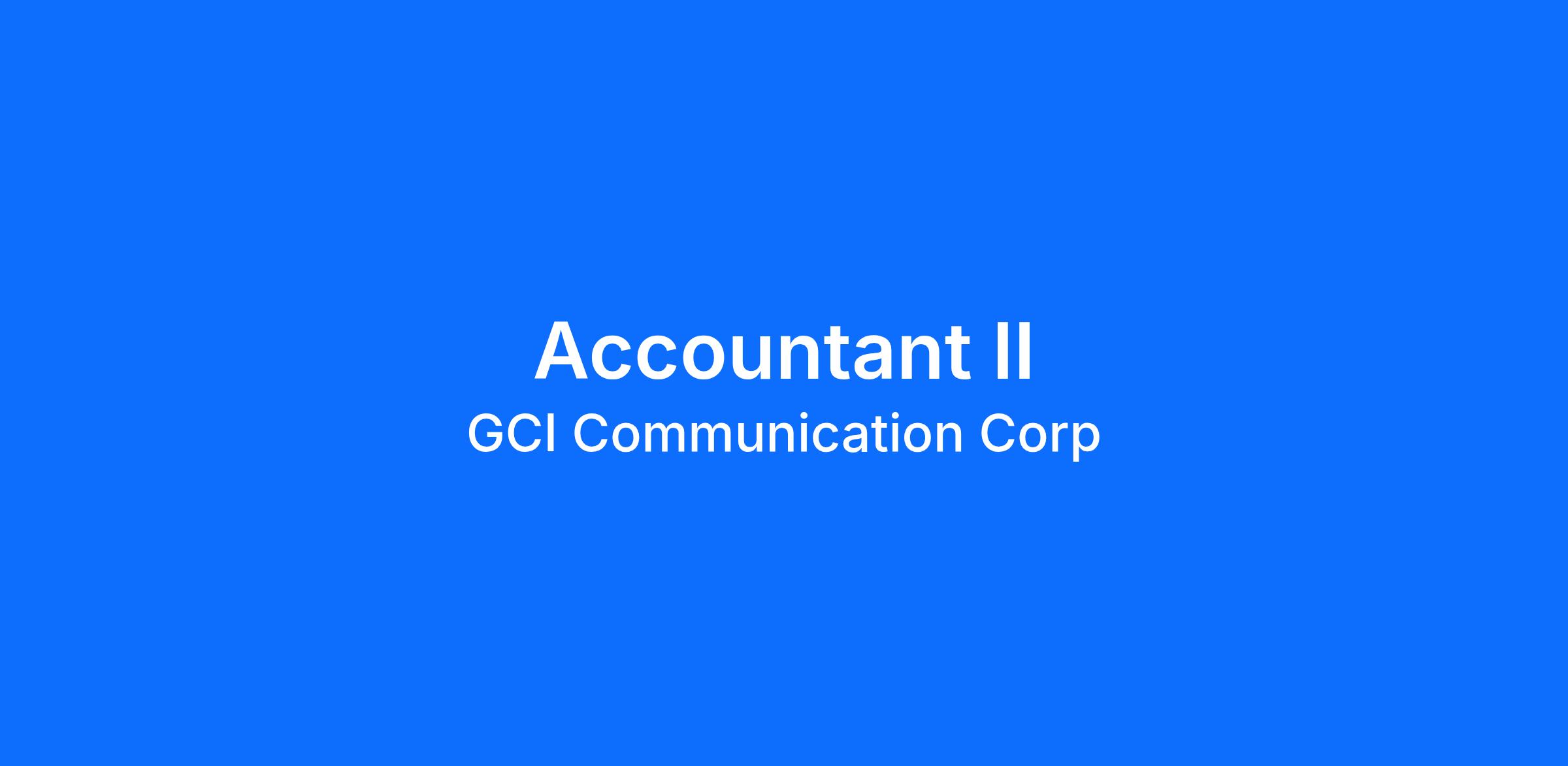 DescriptionGCI's Accountant II will work as an integral member of the General Ledger Accounting team, participate in the monthly general ledger close, reconciliation, and reporting processes. Provide direct and indirect support for all business departments within GCI and subsidiaries.